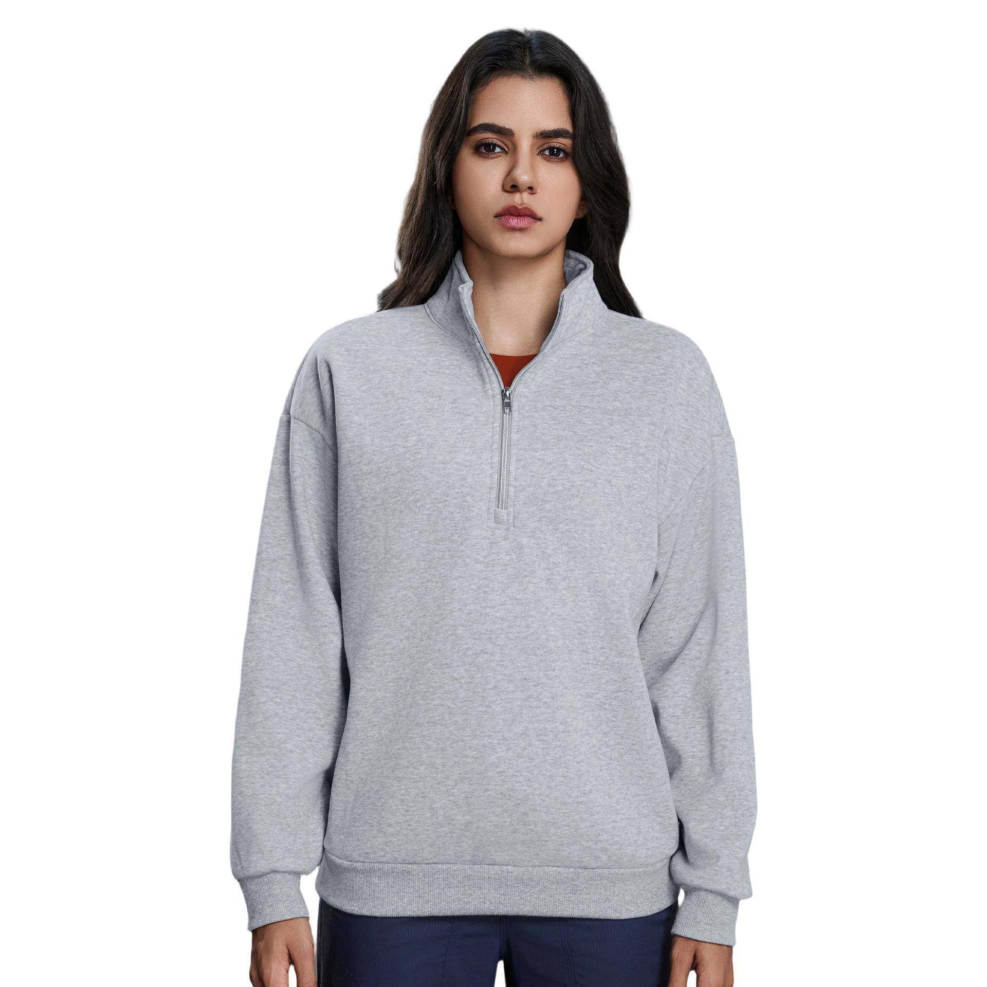 秋冬新款半拉链加绒加厚立领卫衣女休闲宽松百搭保暖上衣D25154