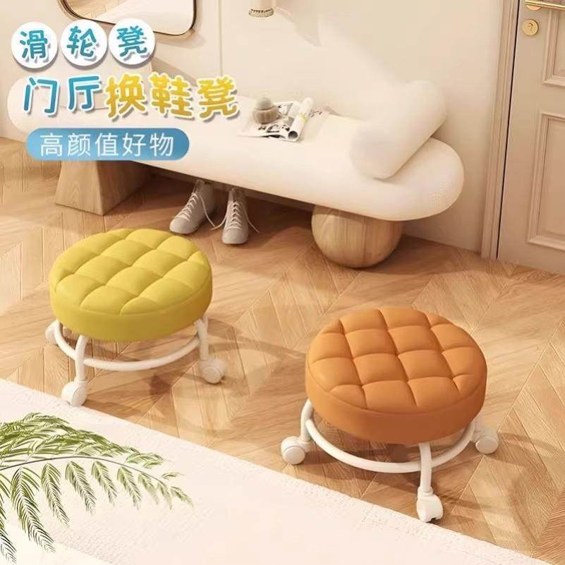 万向轮小凳子家用滑轮矮凳儿童板凳小椅子带轮移动圆凳客厅沙发凳