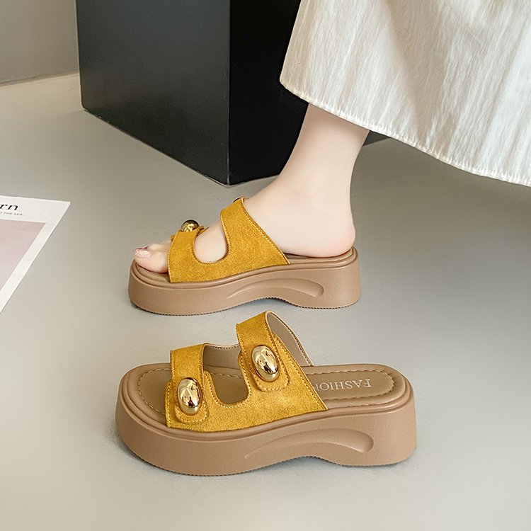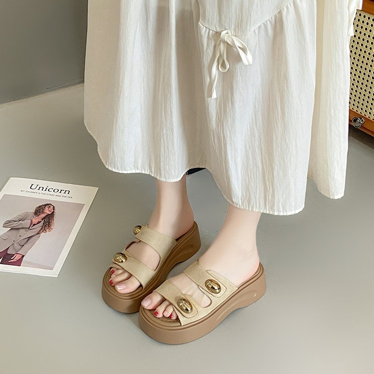 2025新款厚底凉拖鞋女夏外穿配裙子罗马沙滩凉鞋复古博肯一字拖鞋