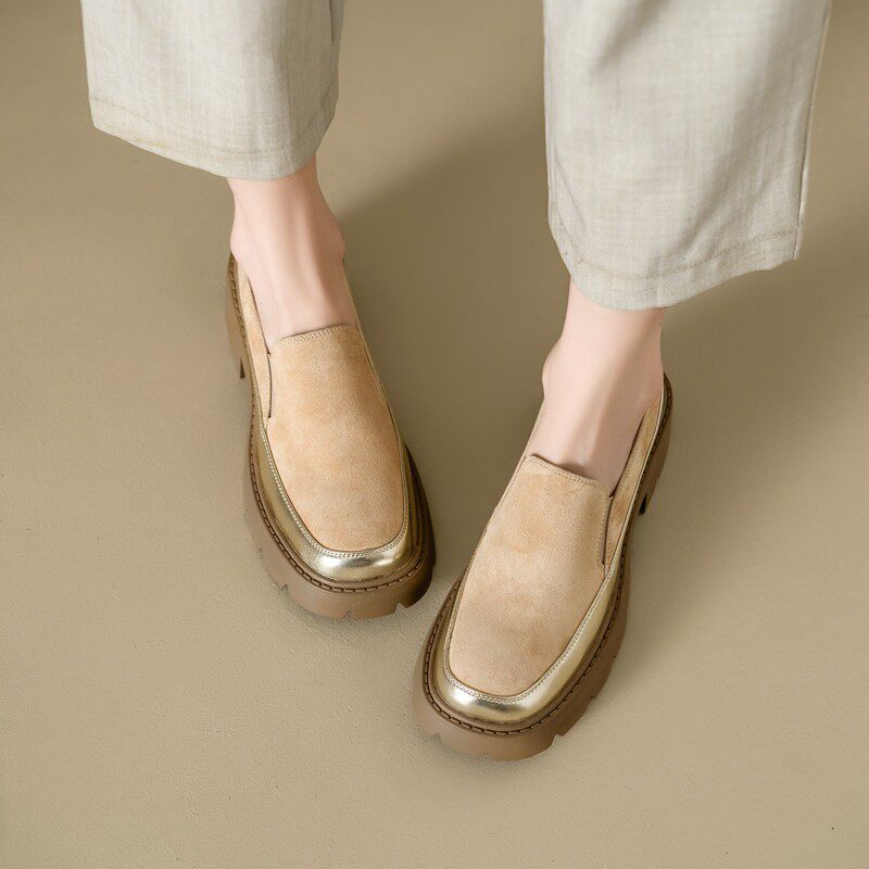意大利~Raraente ~!真皮厚底乐福鞋英伦风小皮鞋一脚蹬懒人鞋单鞋