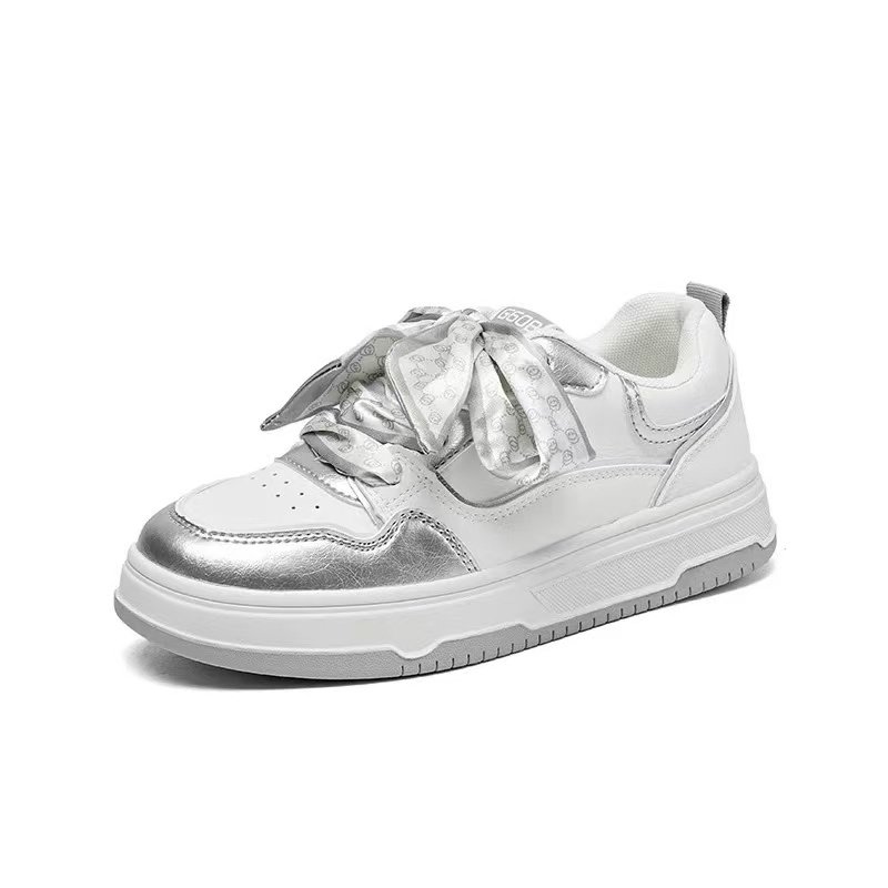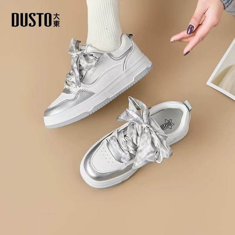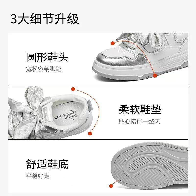 大东小白鞋女鞋2025春季新款休闲平底中跟系带圆头材质拼贴板鞋