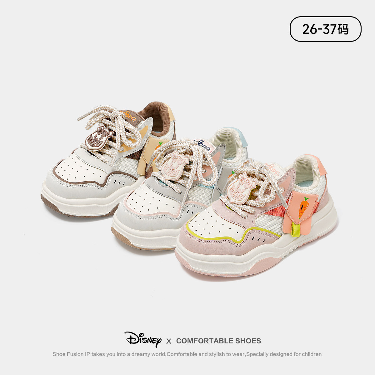 迪士尼儿童休闲低帮板鞋女童2026春秋季新款学生软底防滑运动鞋子