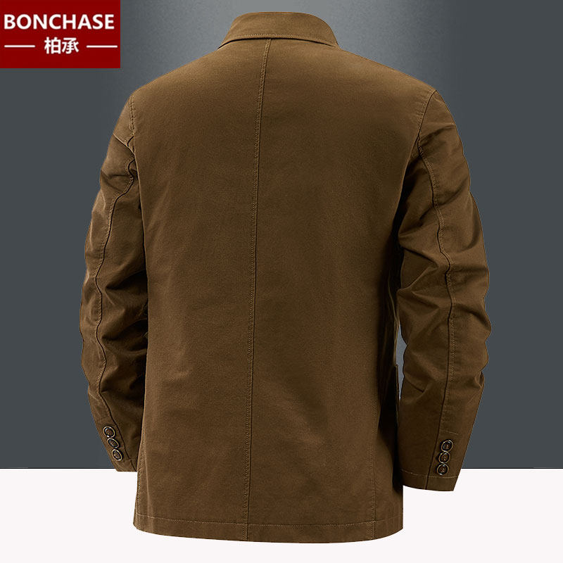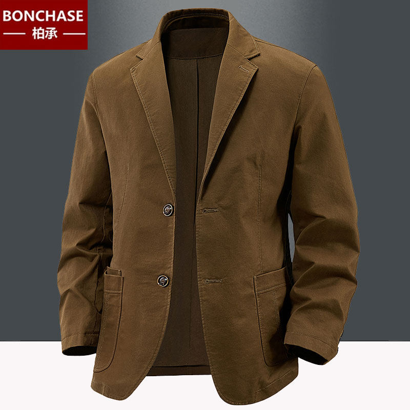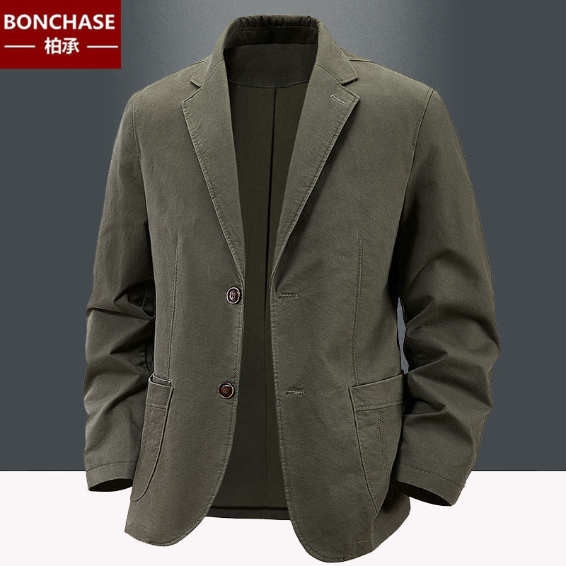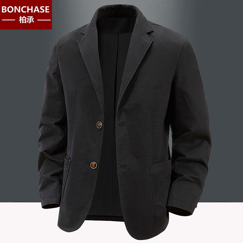 休闲西服男装春秋季纯棉水洗商务外套上衣中青年宽松纯色小西装潮
