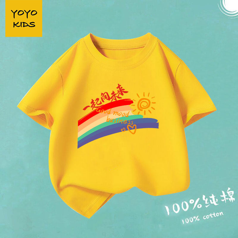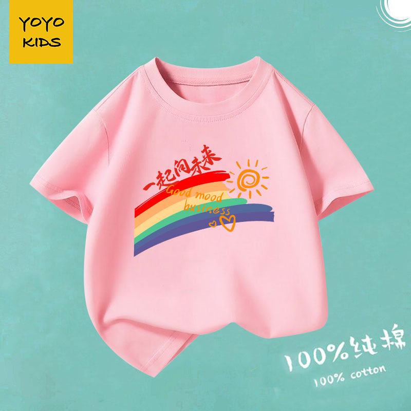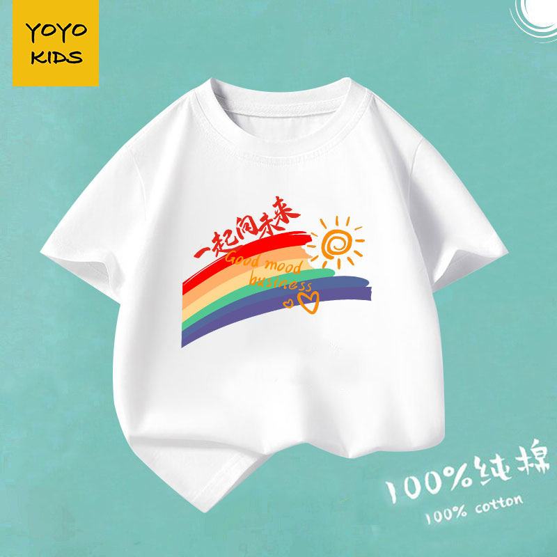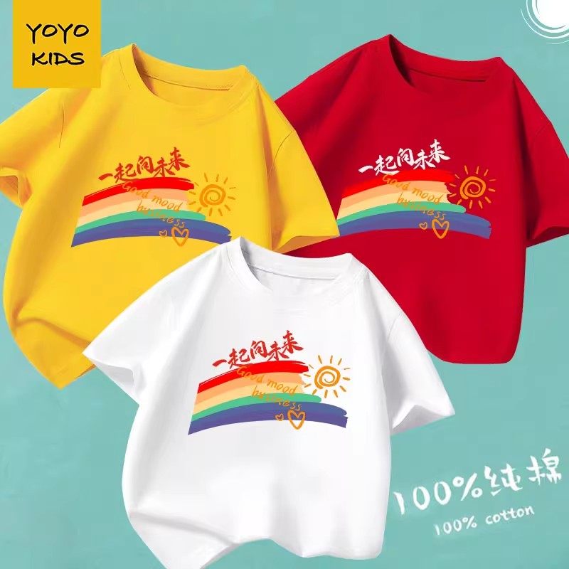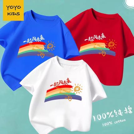 彩虹儿童短袖亲子装t恤定制男女童纯棉上衣幼儿园小学生演出班服