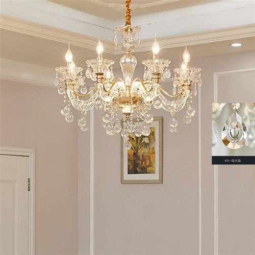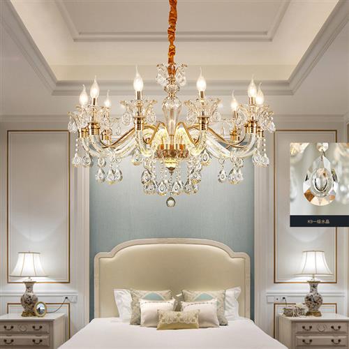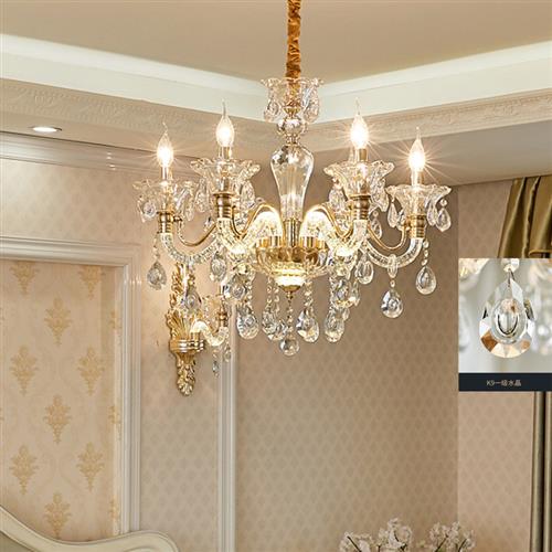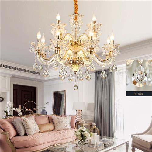 欧式水晶吊灯客厅灯美式别墅餐厅卧室蜡烛灯简约轻奢复式楼灯