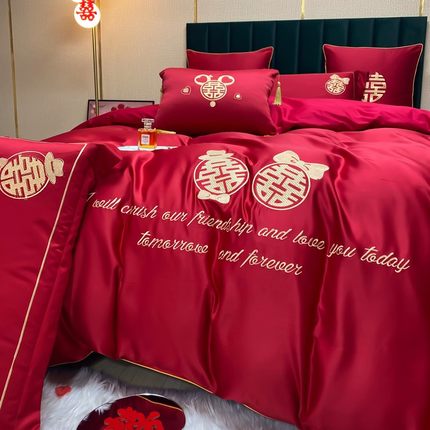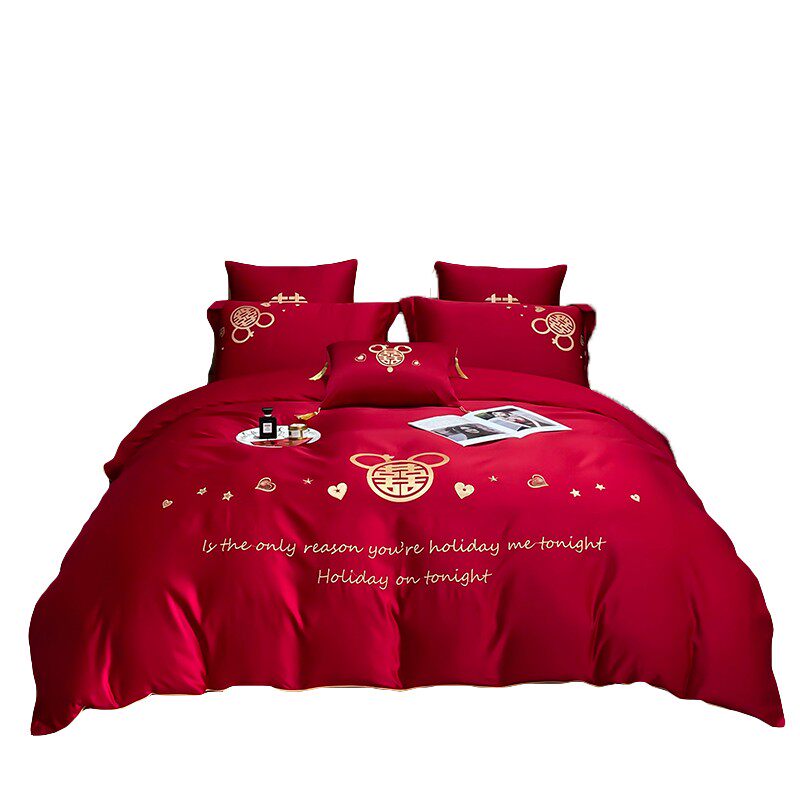 高档婚庆四件套全棉o大红床单纯棉刺绣新结婚房嫁喜庆被套床上用