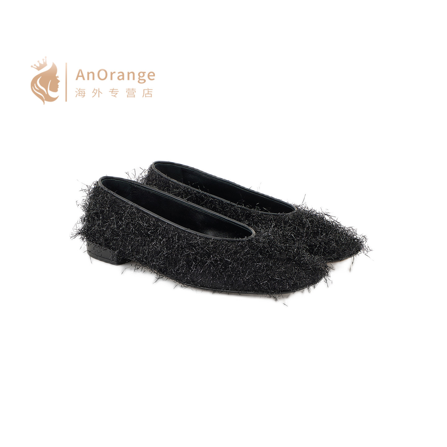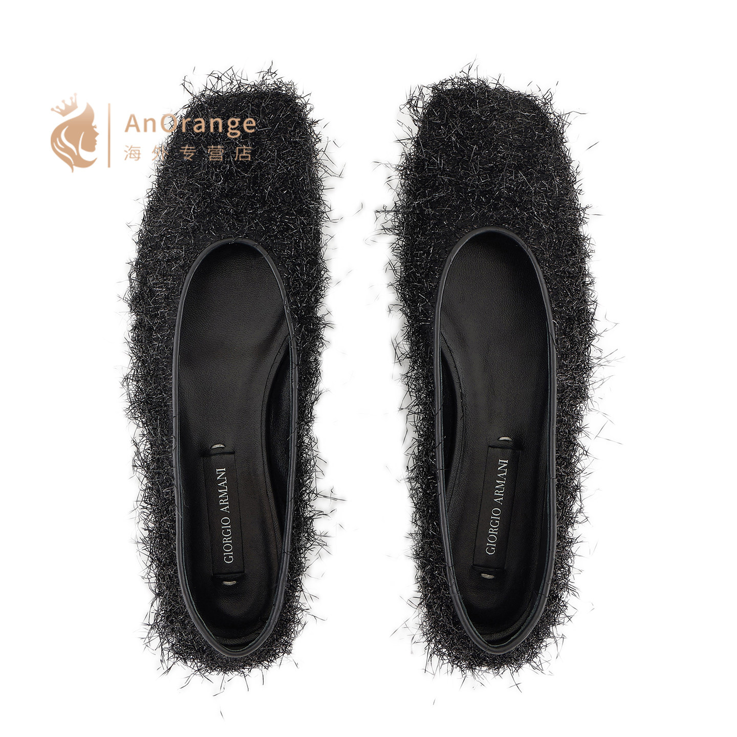 Armani阿玛尼GA女鞋浅口单鞋2026新款黑色小牛皮方头芭蕾舞鞋