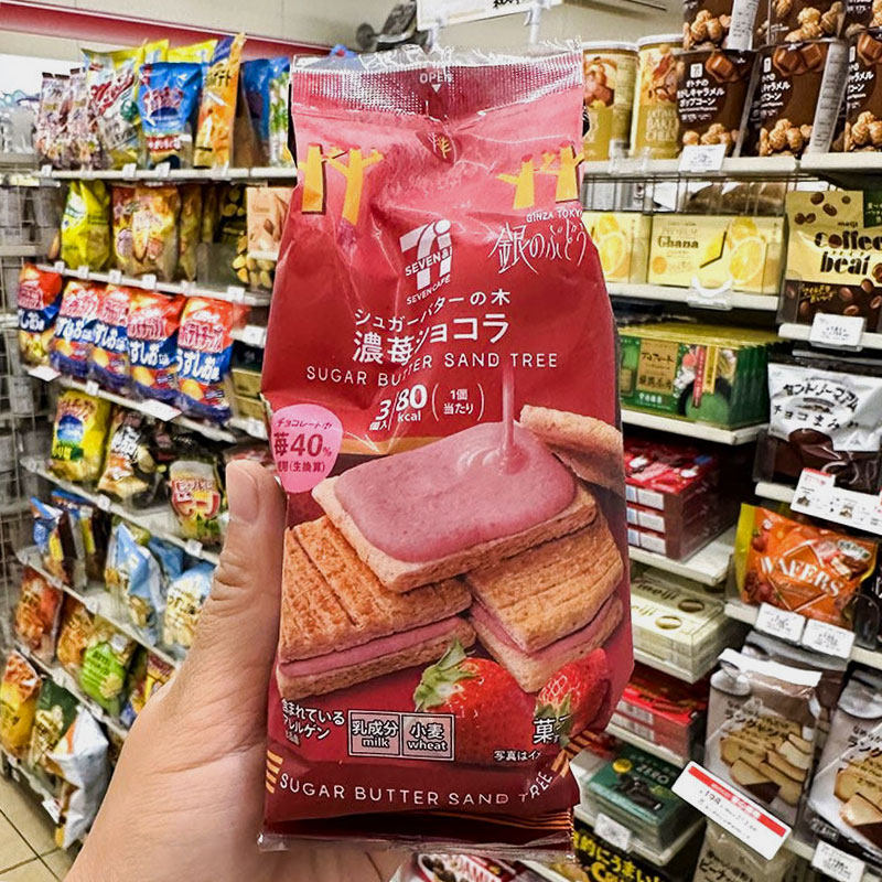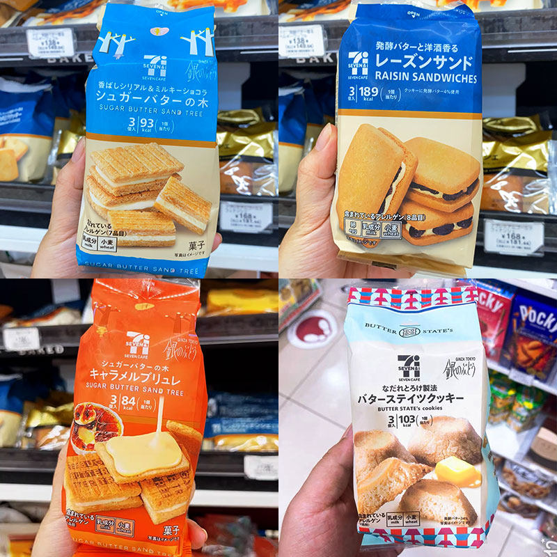 现货/日本本土711便利店黄油树夹心饼干朗姆酒提子巧克力曲奇零食