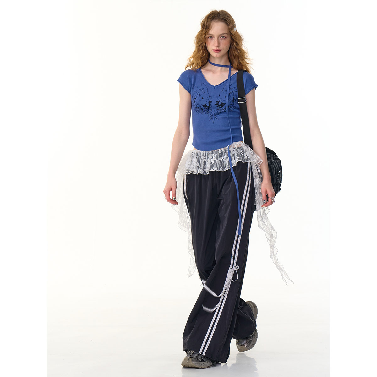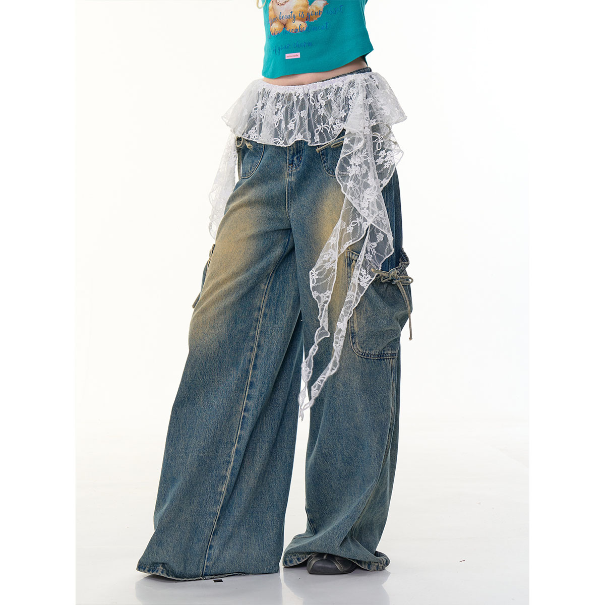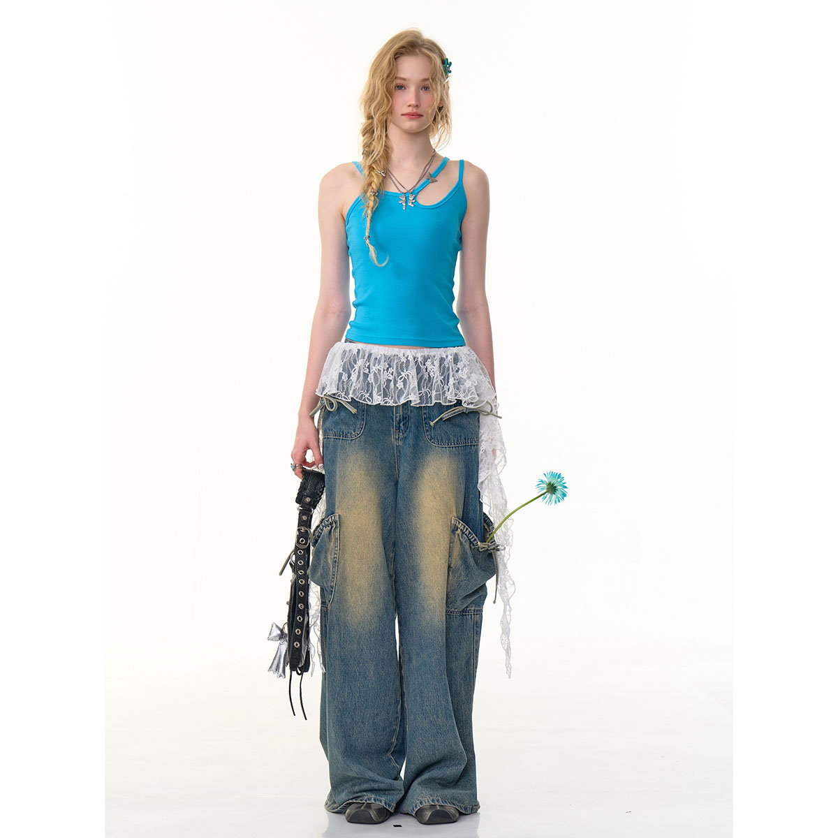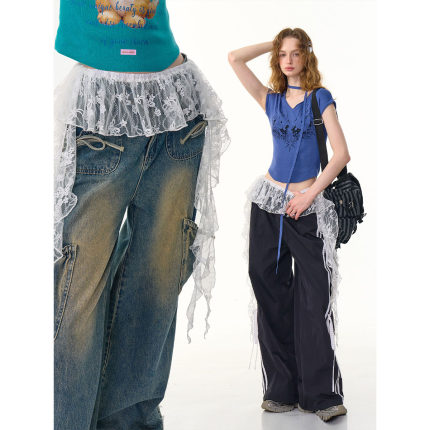 ziziFei新款美式复古设计感白色不规则蕾丝花边一片式叠穿屁帘女