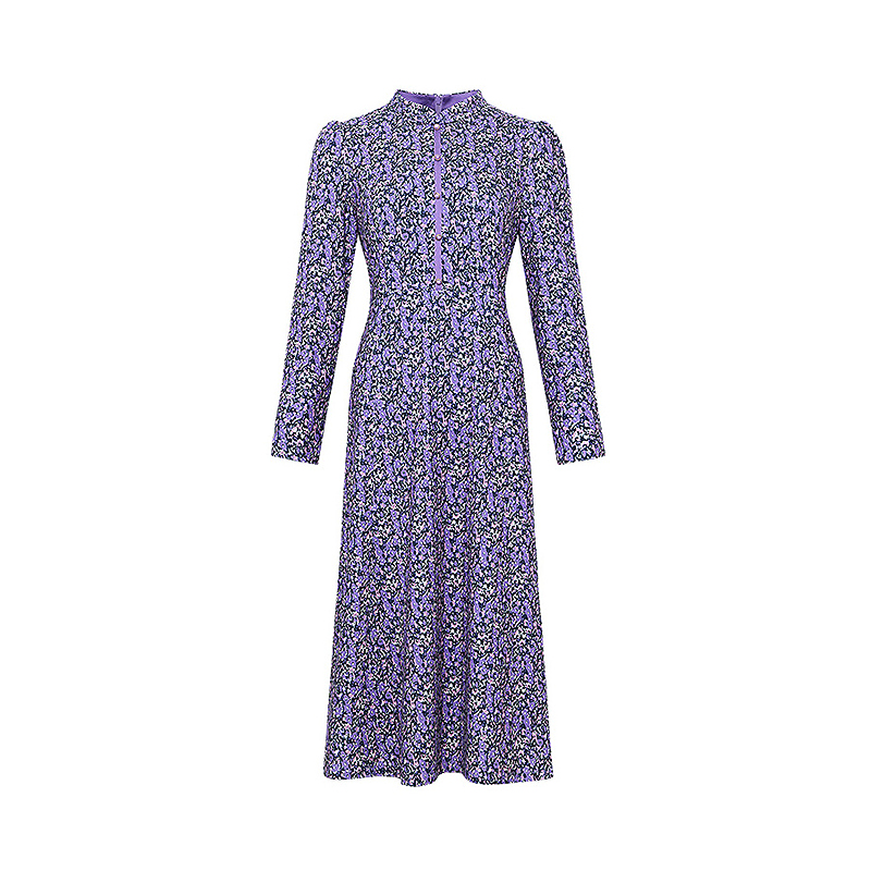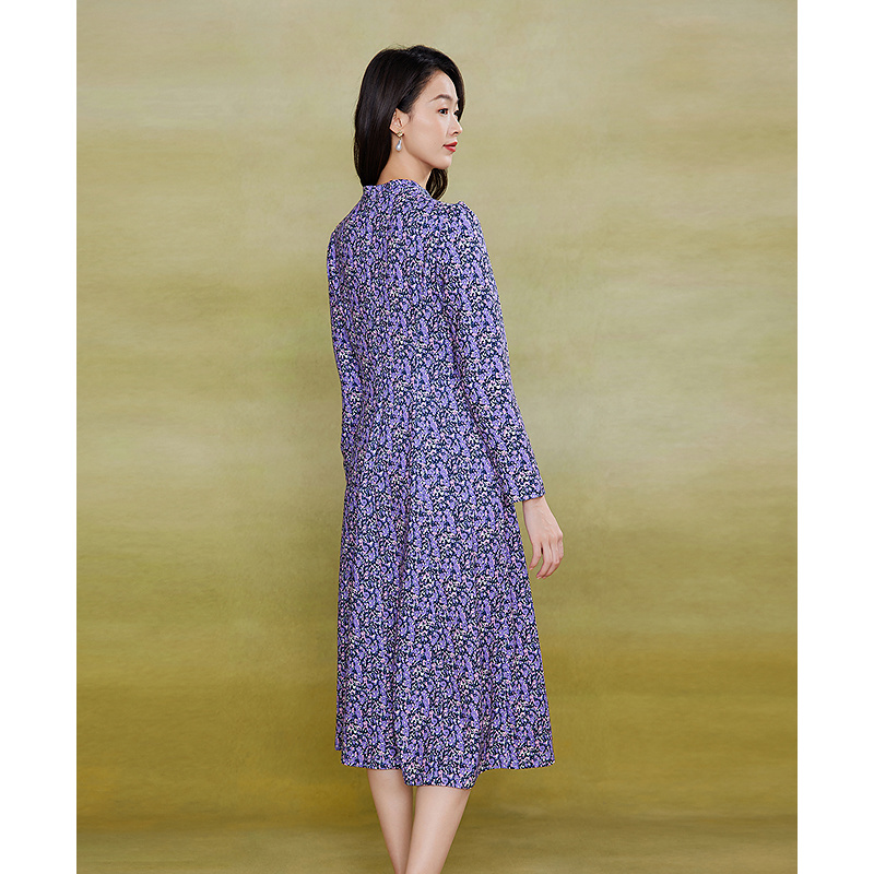 黛玛诗显瘦花裙子冬季新款浪漫碎花针织连衣裙长袖收腰伞裙女