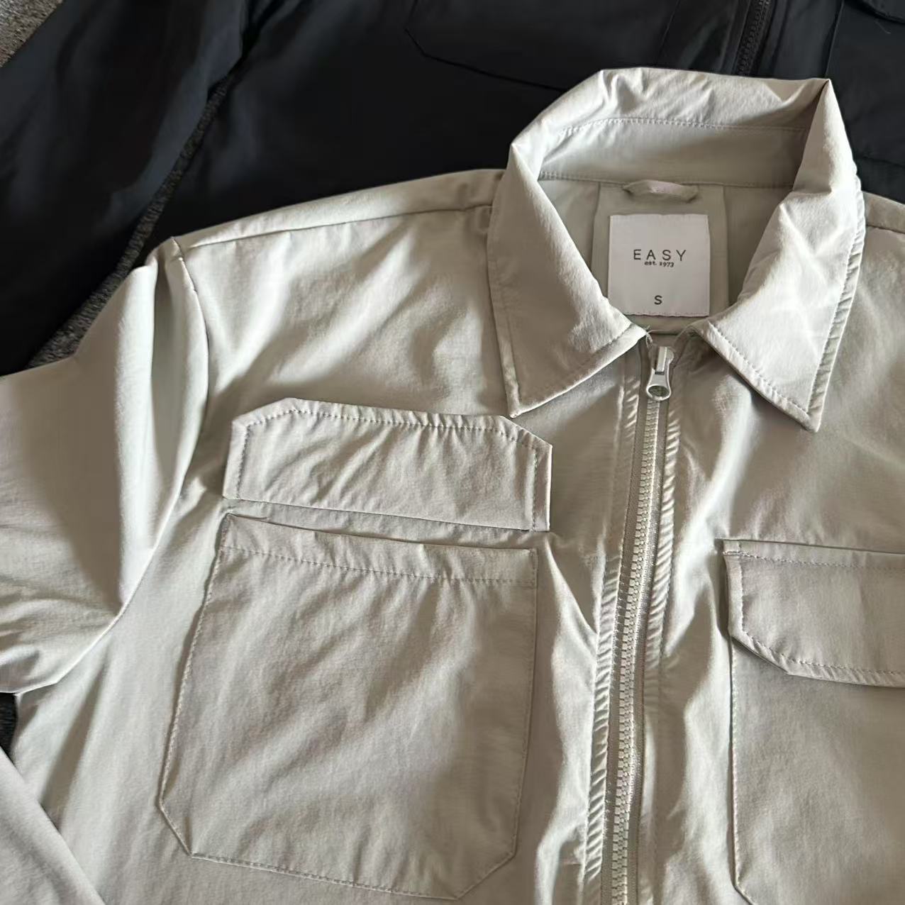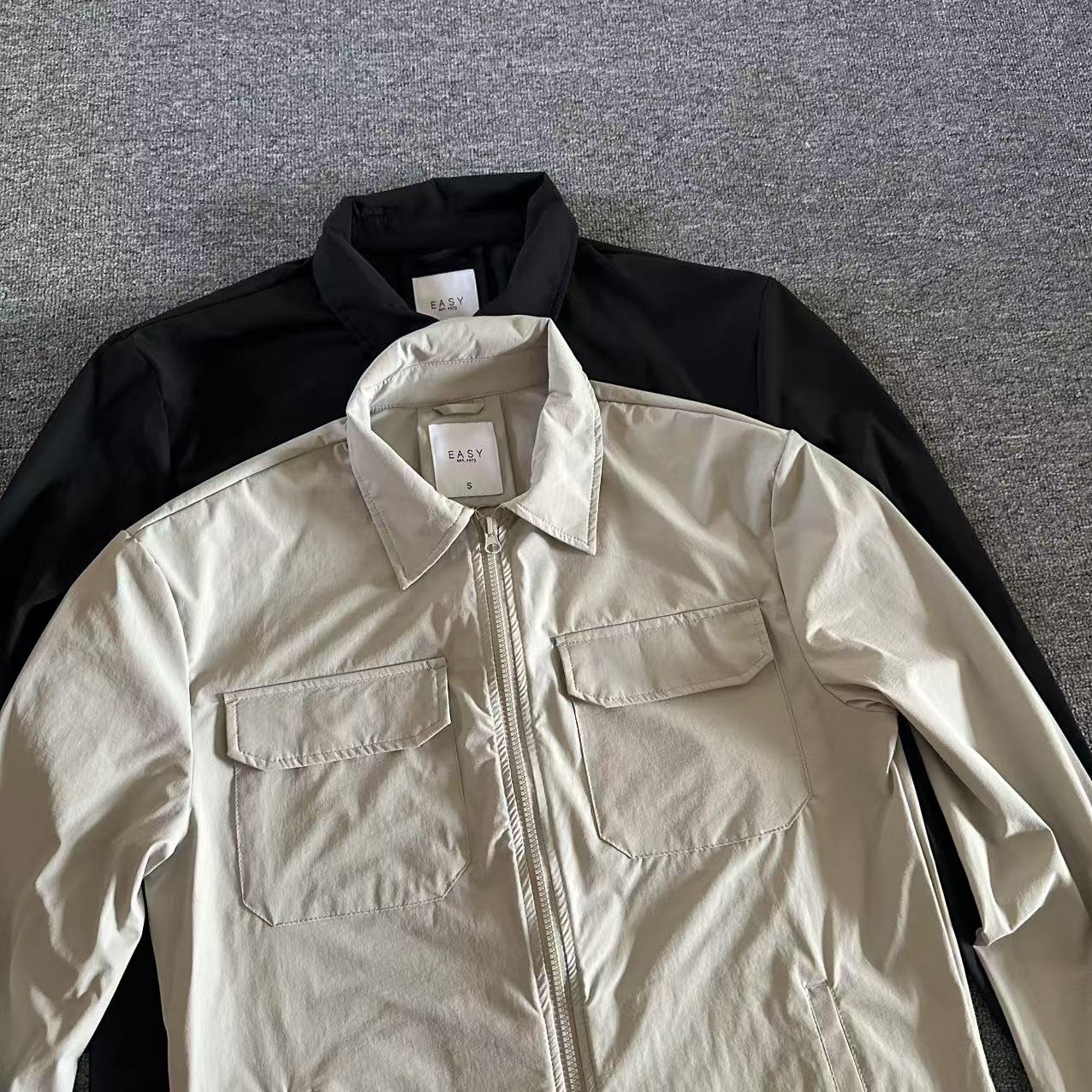 外贸男士春秋薄款翻领多兜工装衬衫微弹开衫休闲夹克衫外套