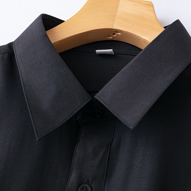 双绉纯桑蚕丝长袖衬衫男夏季薄款黑色商务真丝绸缎硬领衬衣透气