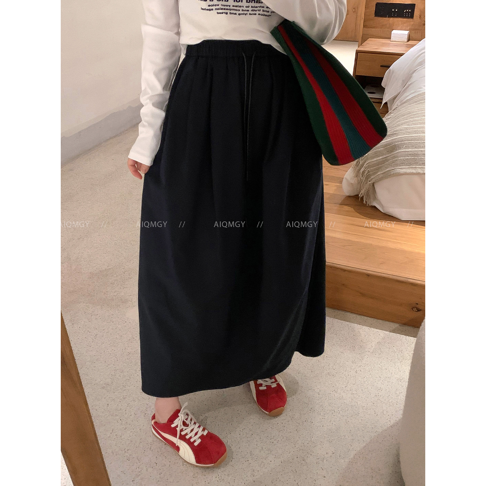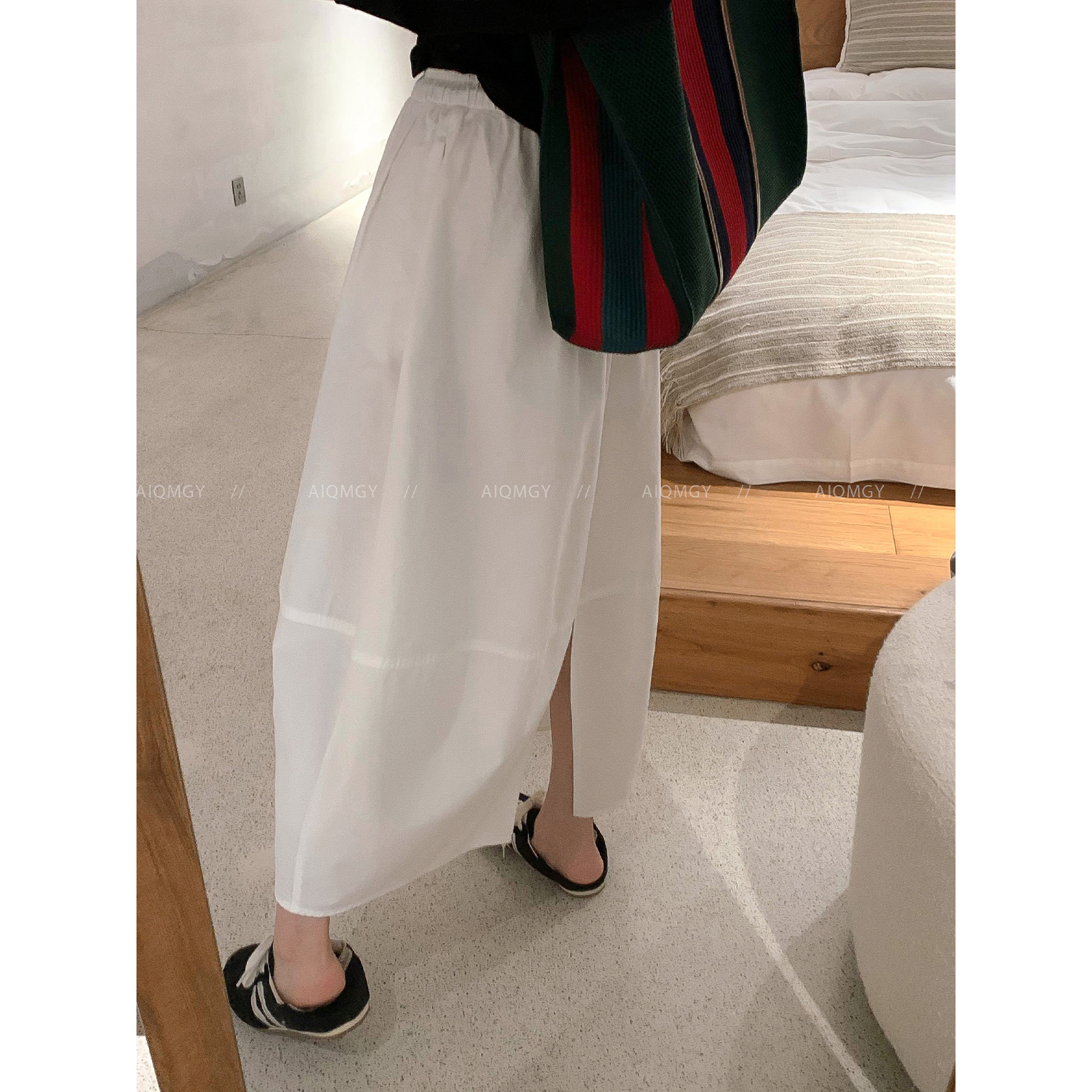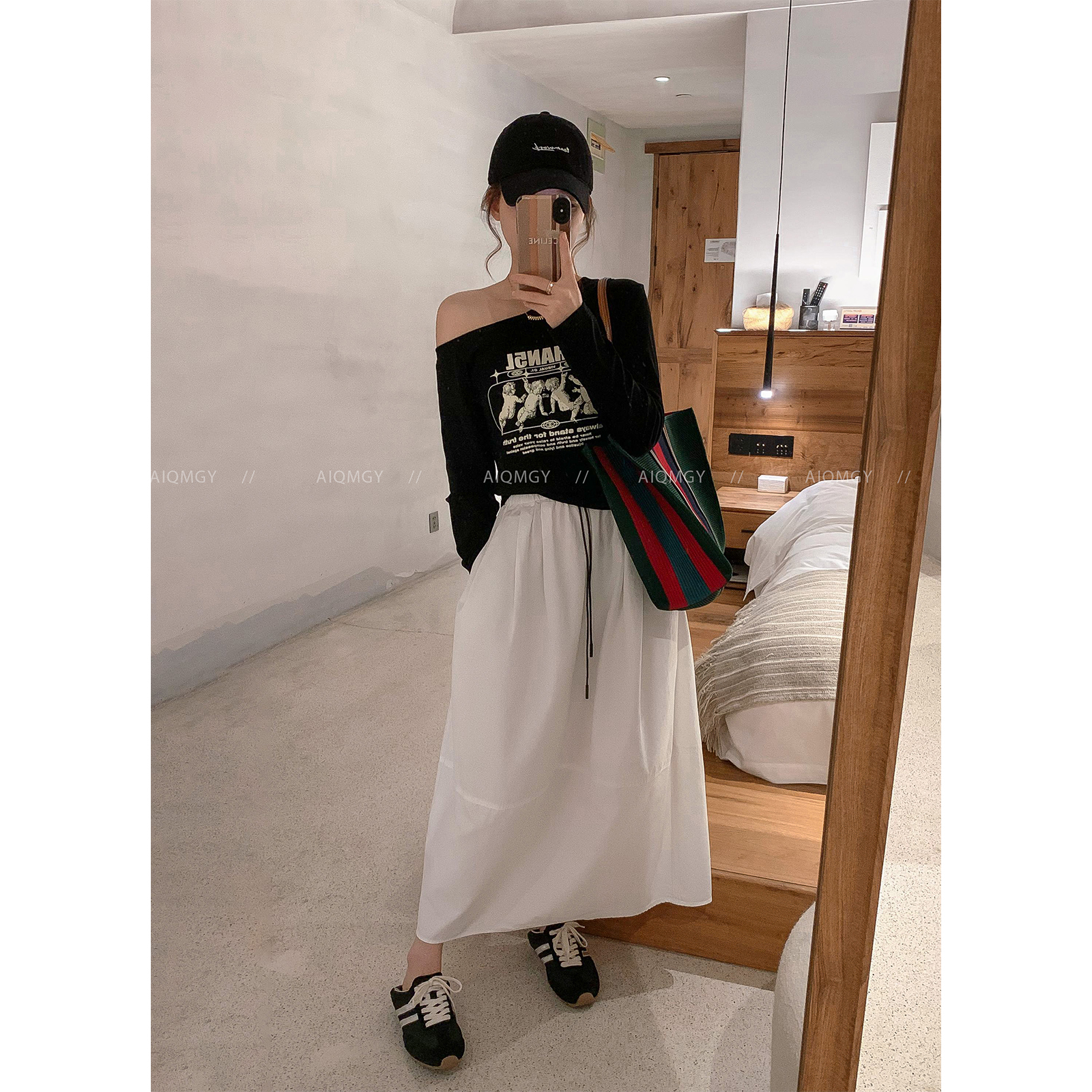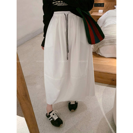 爱情魔鬼鱼 白色松紧腰抽绳半身裙女2025早秋新款宽松显瘦A字长裙