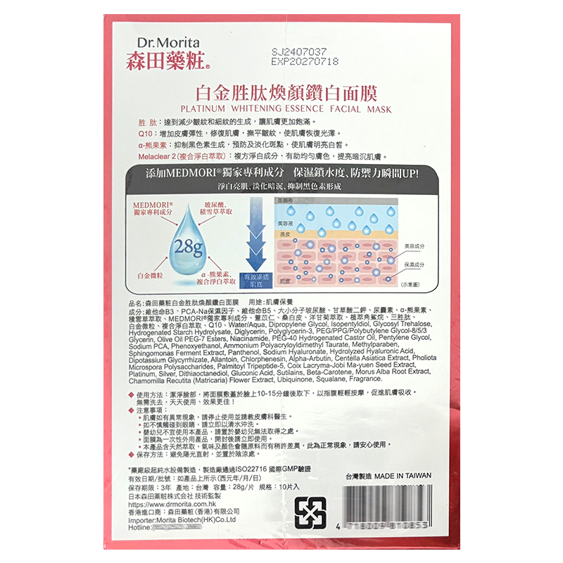香港购 森田药妆皇牌超A醇玻尿酸焕颜瓒白面膜8片 超补水保湿紧致