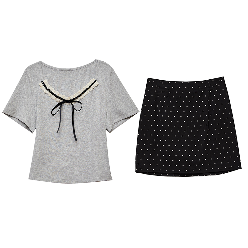 大码百分百2025新款女装修身上衣搭配a字波点半身裙纯欲套装