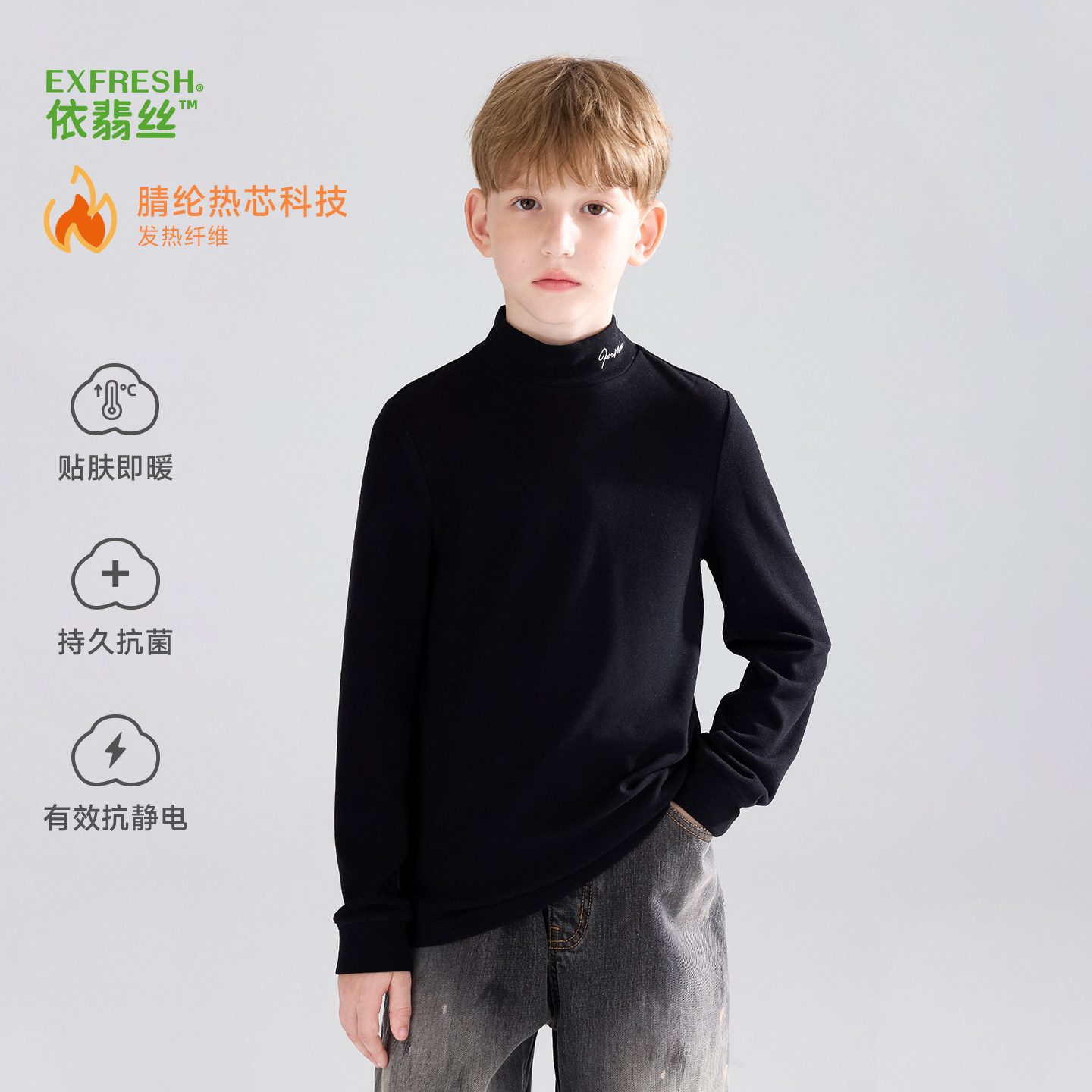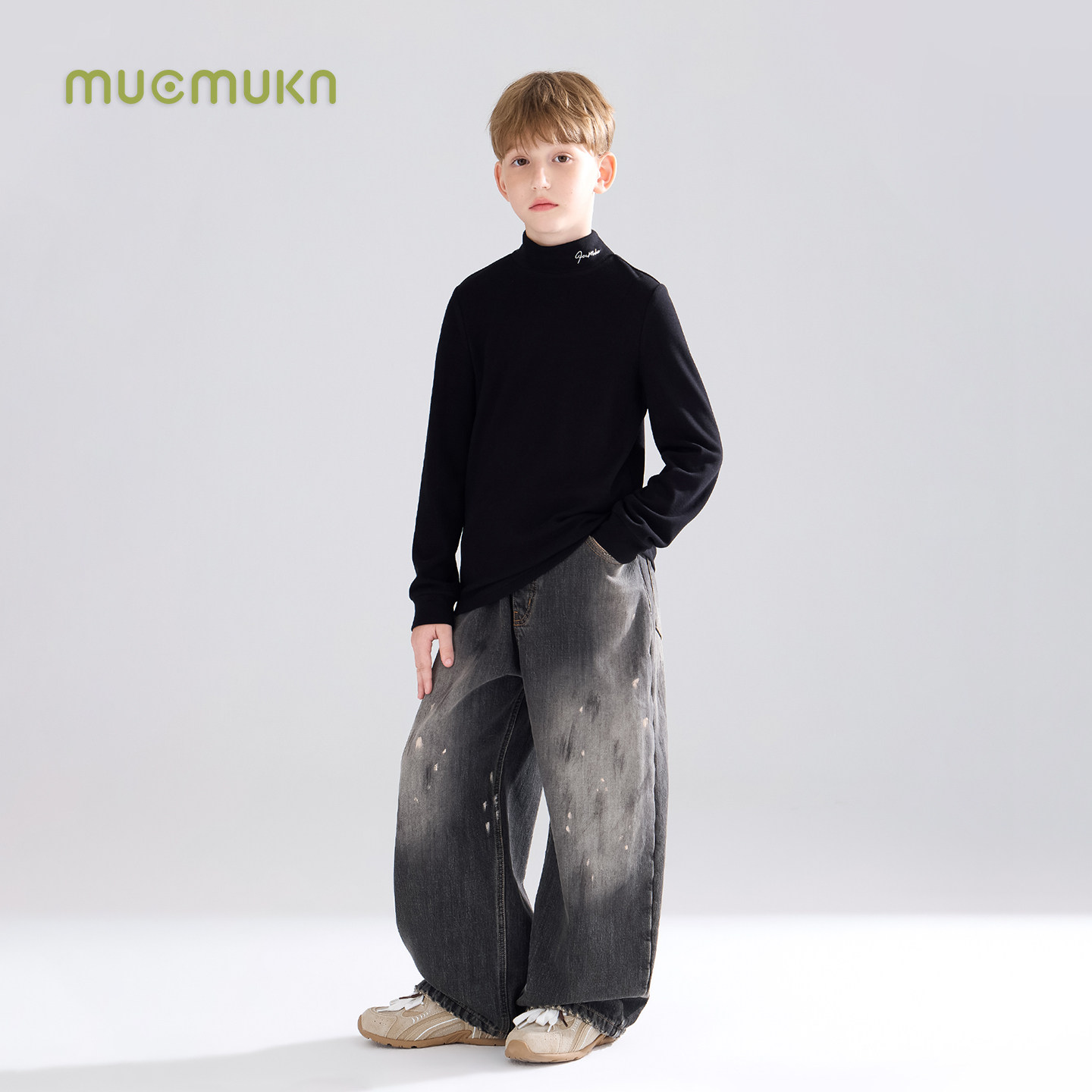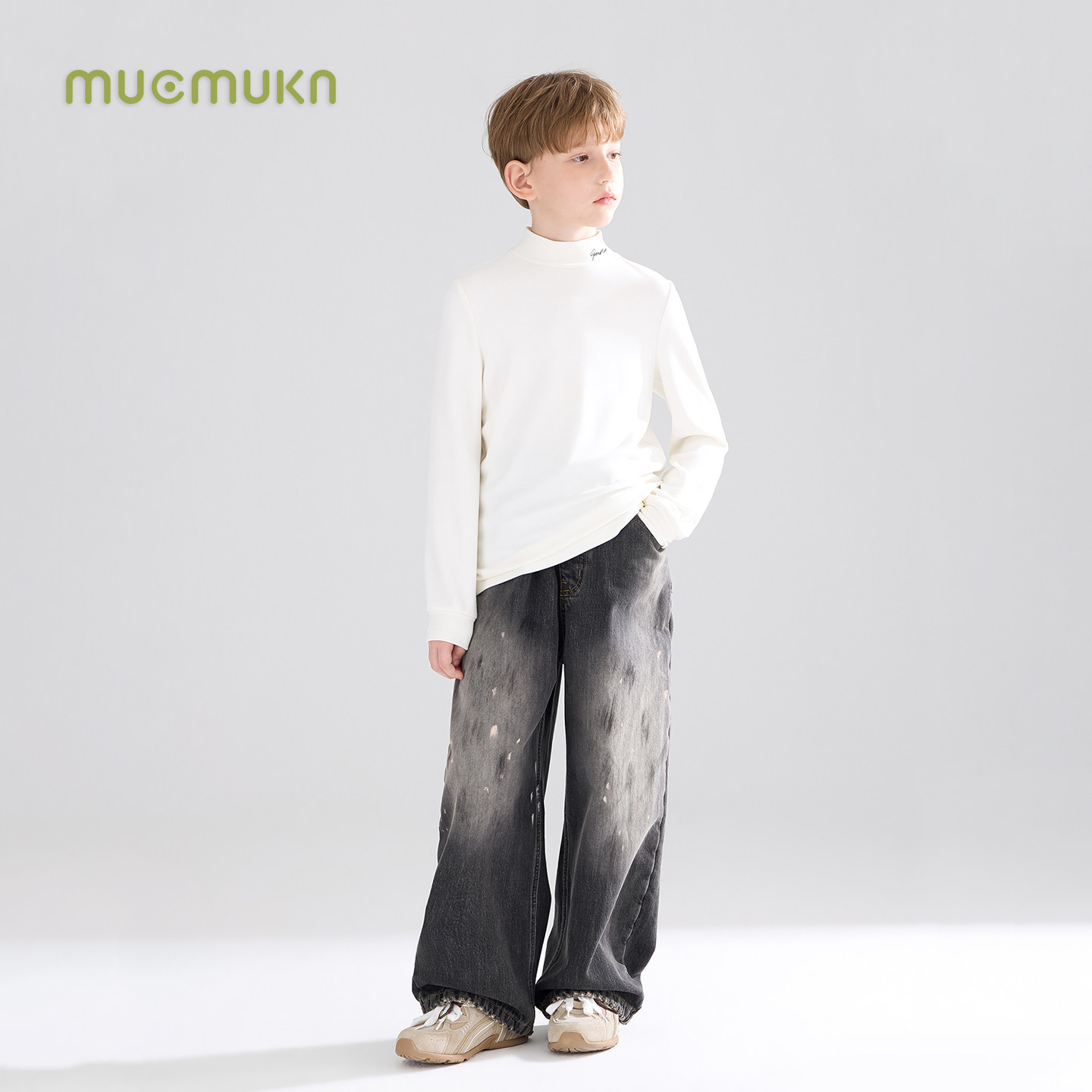 MUCMUKN【抗菌依翡丝】加厚暖绒字母刺绣打底衫抗静电百搭男童冬