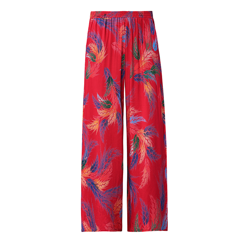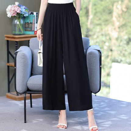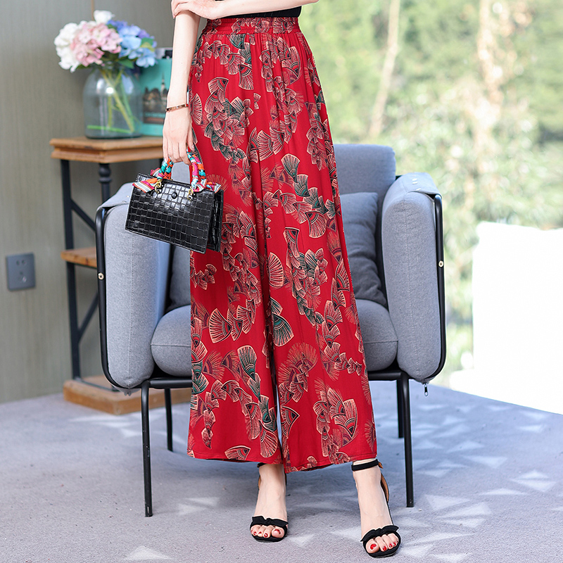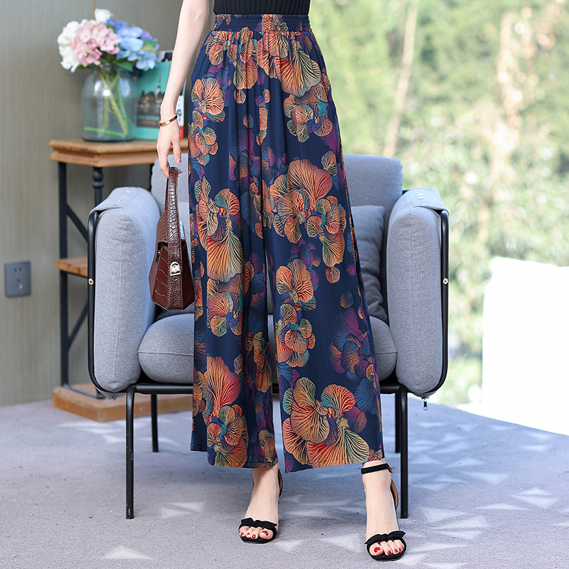 棉绸阔腿裤女2025夏季新款韩版宽松薄款九分裤大码高腰显瘦花裤子