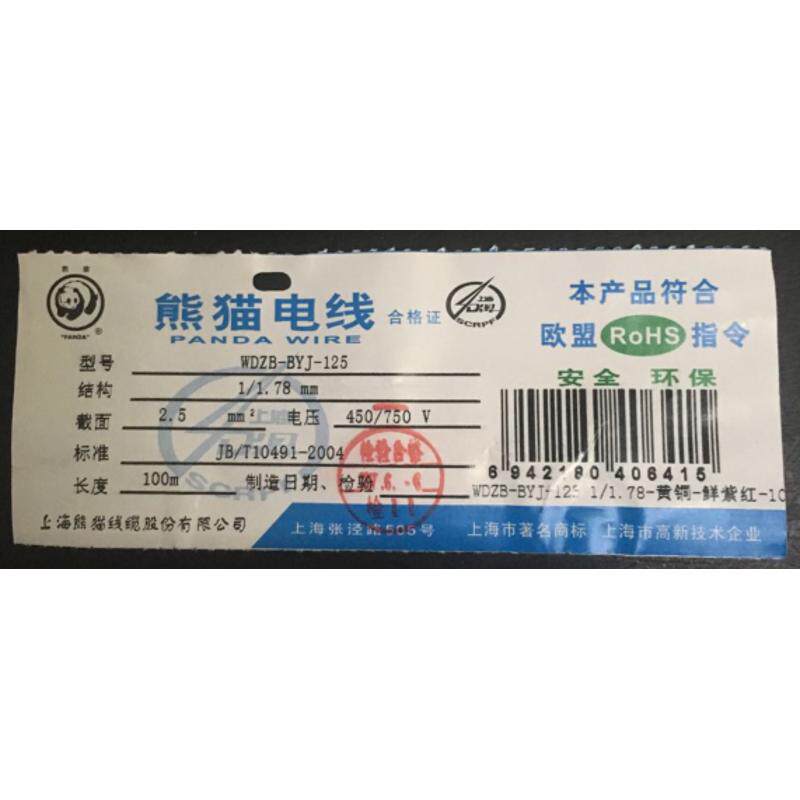 熊猫电线低烟无卤阻燃耐高温1.5平方 WDZB-BYJ-125 单芯铜芯硬线