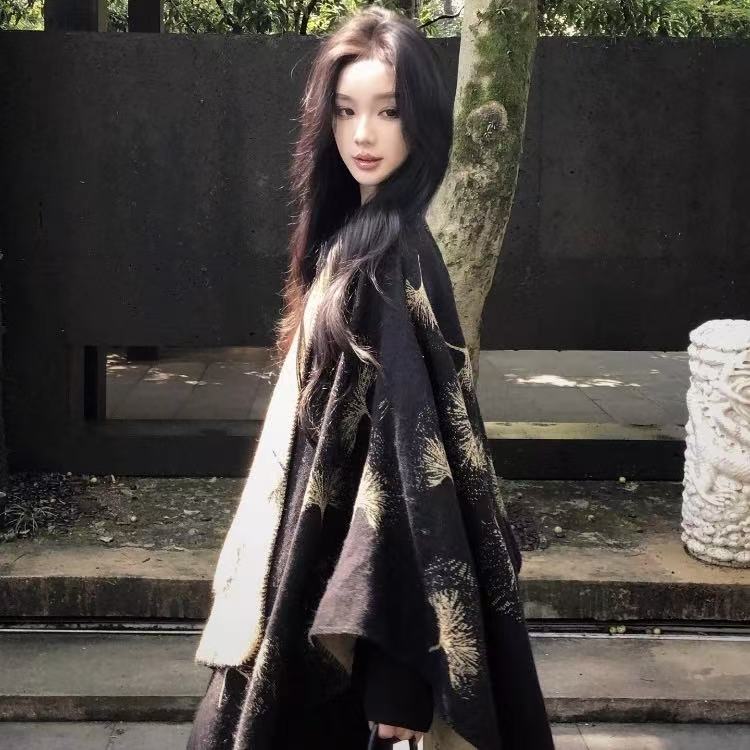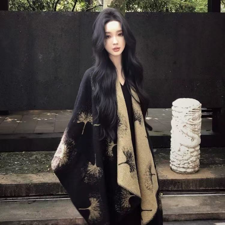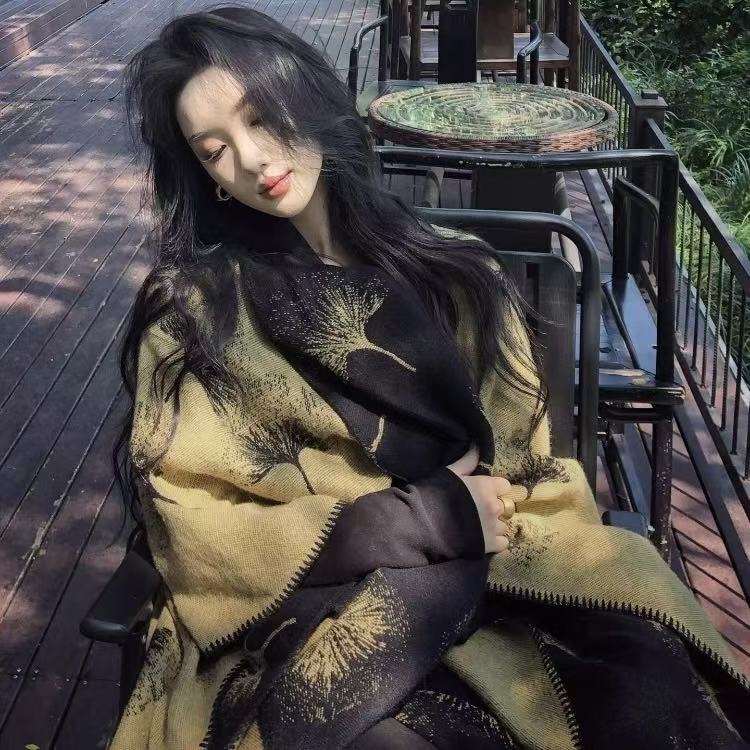 银杏叶双面披肩外搭女民族风高级感气质空调斗篷保暖围巾旅游披风