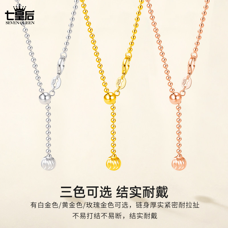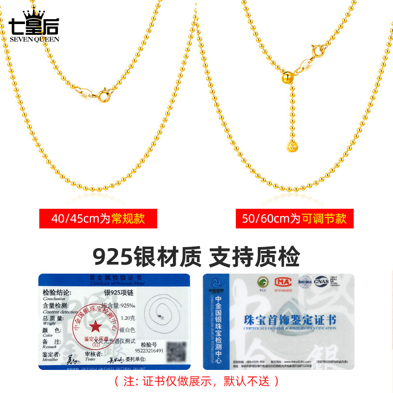 925纯银圆珠链项链女可调节珠珠链万能吊坠豆豆素链配翡翠的链子