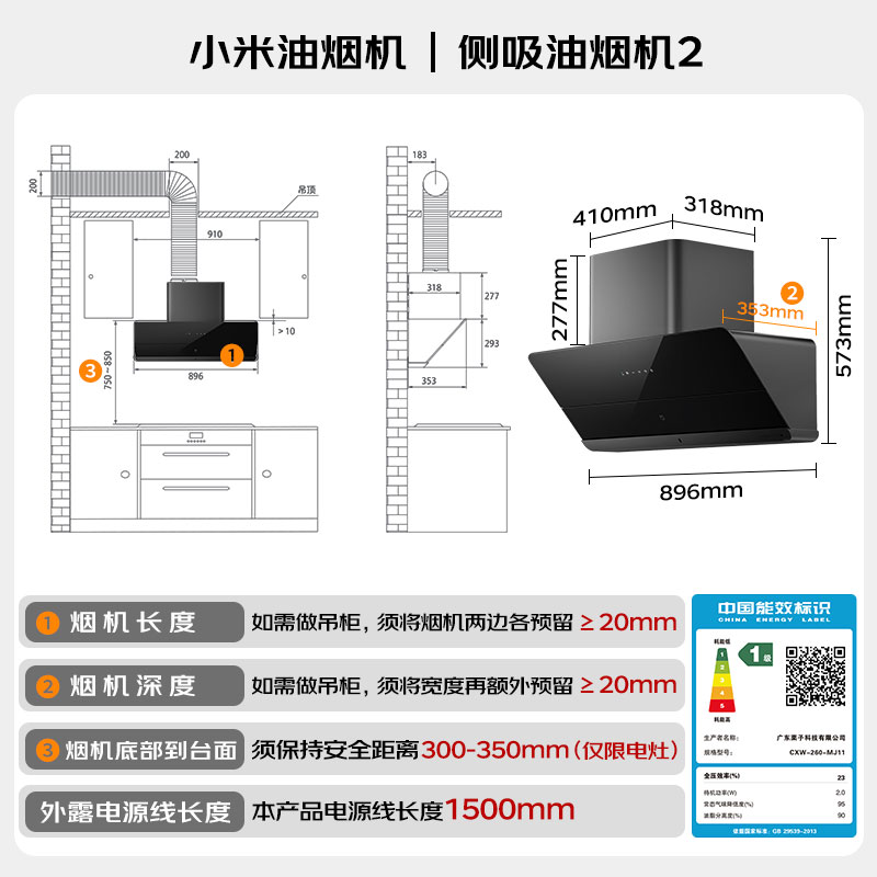 【新品】小米官方米家智能吸油烟机2侧吸抽油烟机燃气灶大吸力06