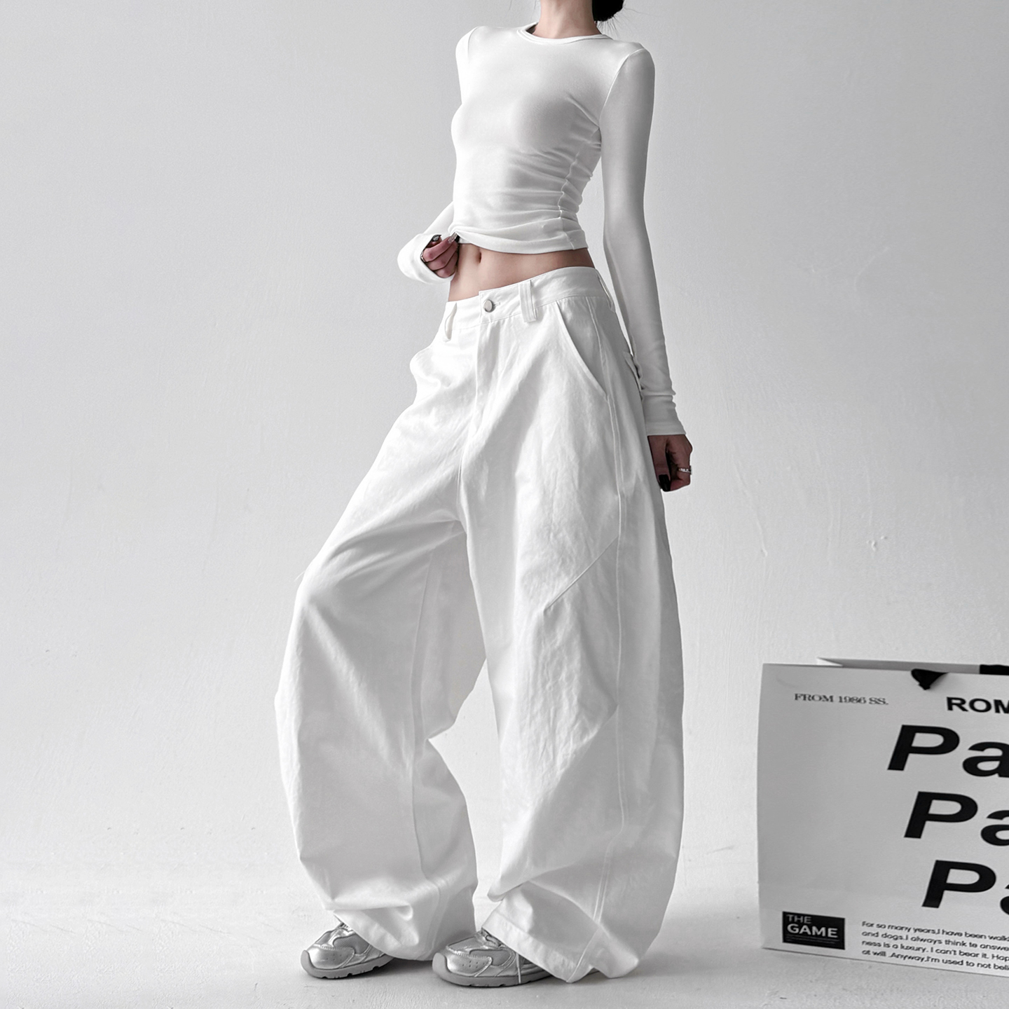 2025秋季新款美式复古工装裤女宽松显瘦休闲阔腿裤高腰直筒长裤子