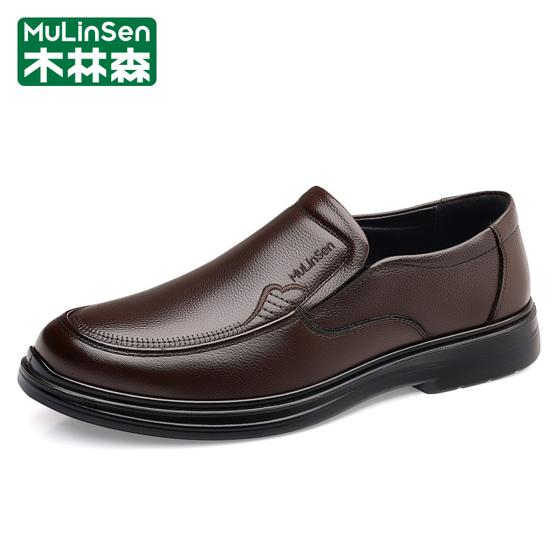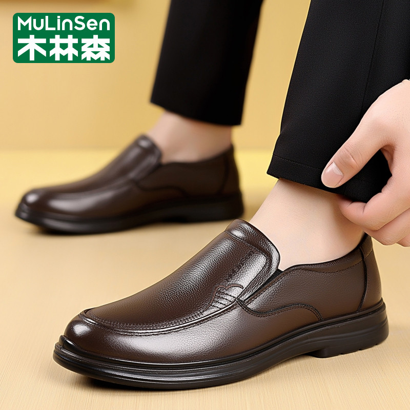 木林森豆豆鞋男春季商务正装休闲一脚蹬复古乐福爸爸结婚新郎潮鞋