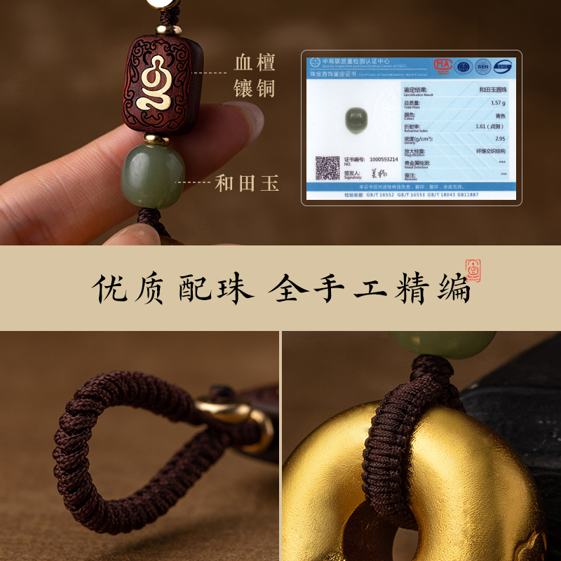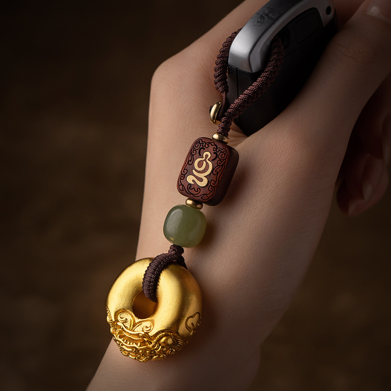 招财沙金貔貅平安扣钥匙扣汽车钥匙挂件高档黄铜挂绳挂饰钥匙链