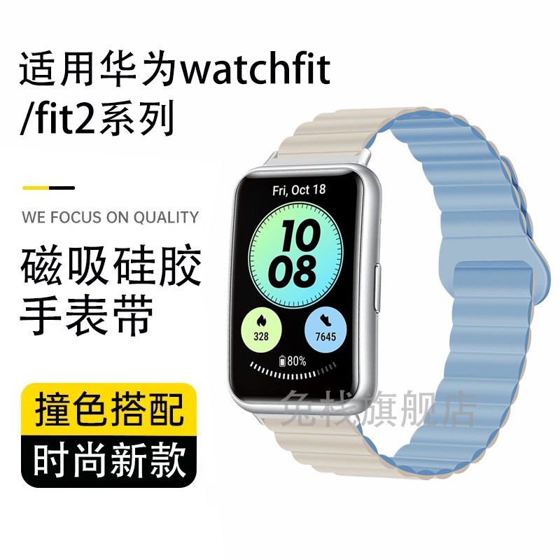 适用华为手表watch fit2手环表带fit new新款替换硅胶磁吸原装高级透气男官方watchfit3女雅致款tia-b19/b29