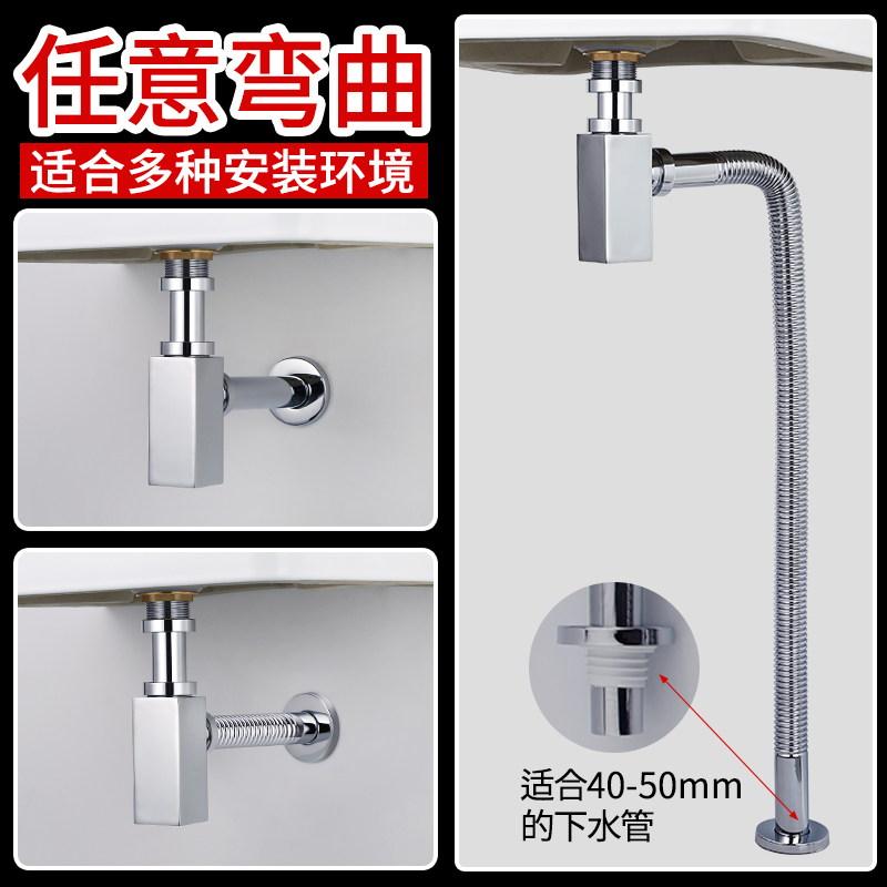 洗手盆下水管方形墙排地排下水器套装防臭排水管洗脸台盆配件铜