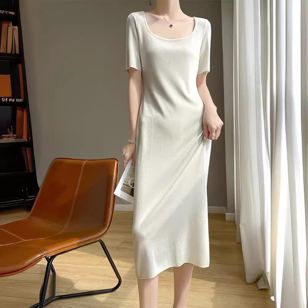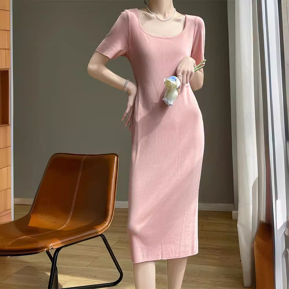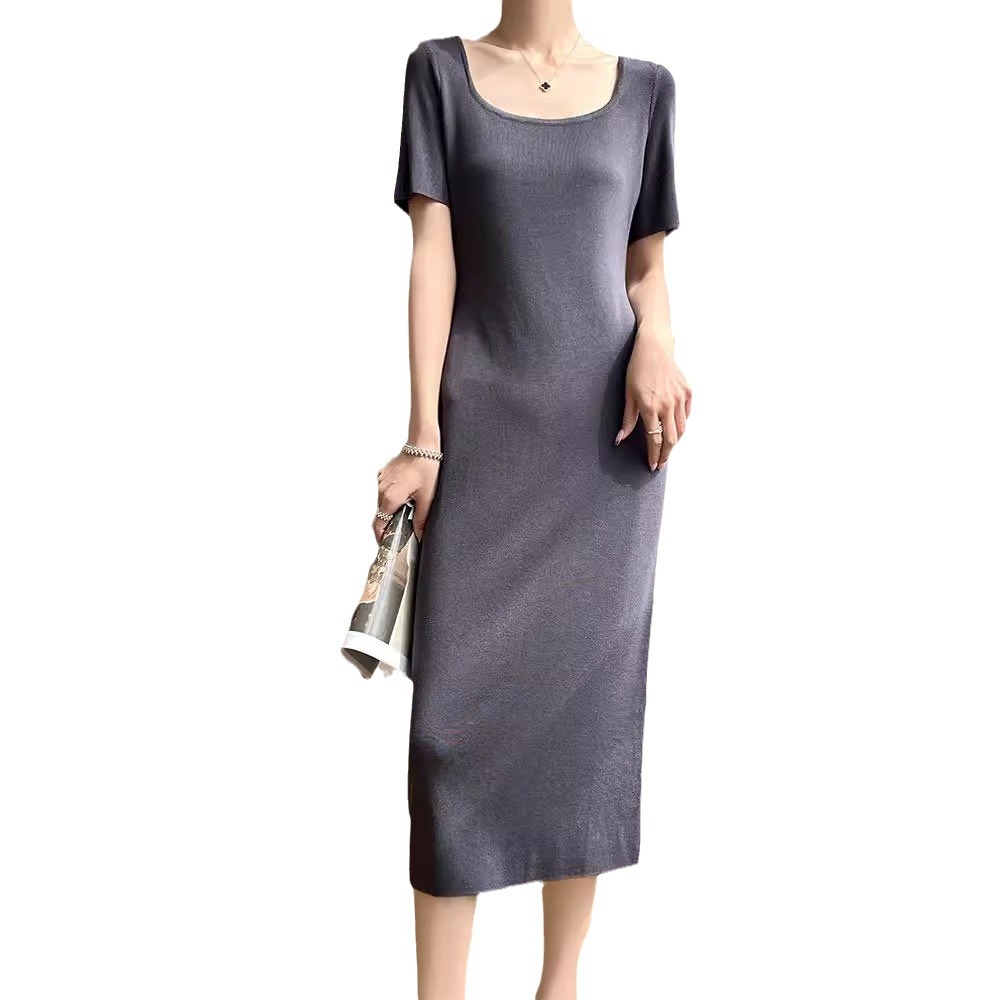 法式夏季新款紧身短袖针织连衣裙纯欲风性感修身中长款包臀裙子