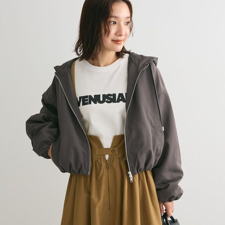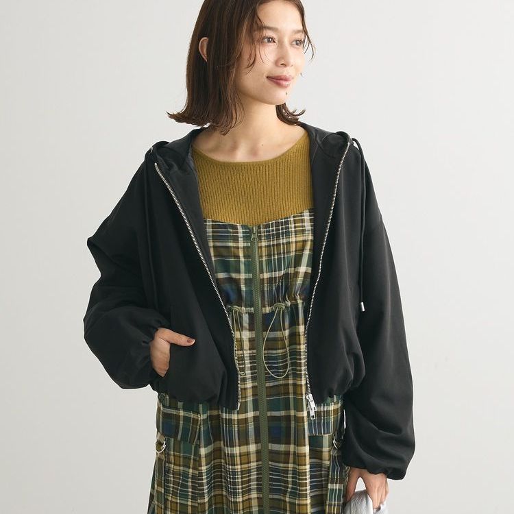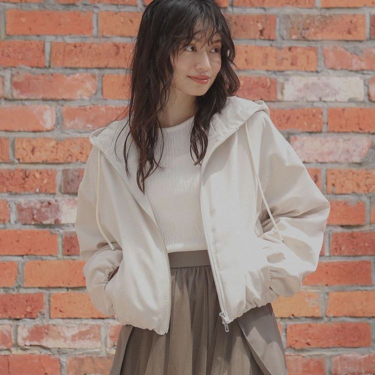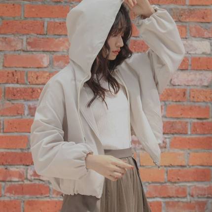 日单品牌春秋新款时尚防风双向拉链松紧花苞腰连帽风衣外套31014