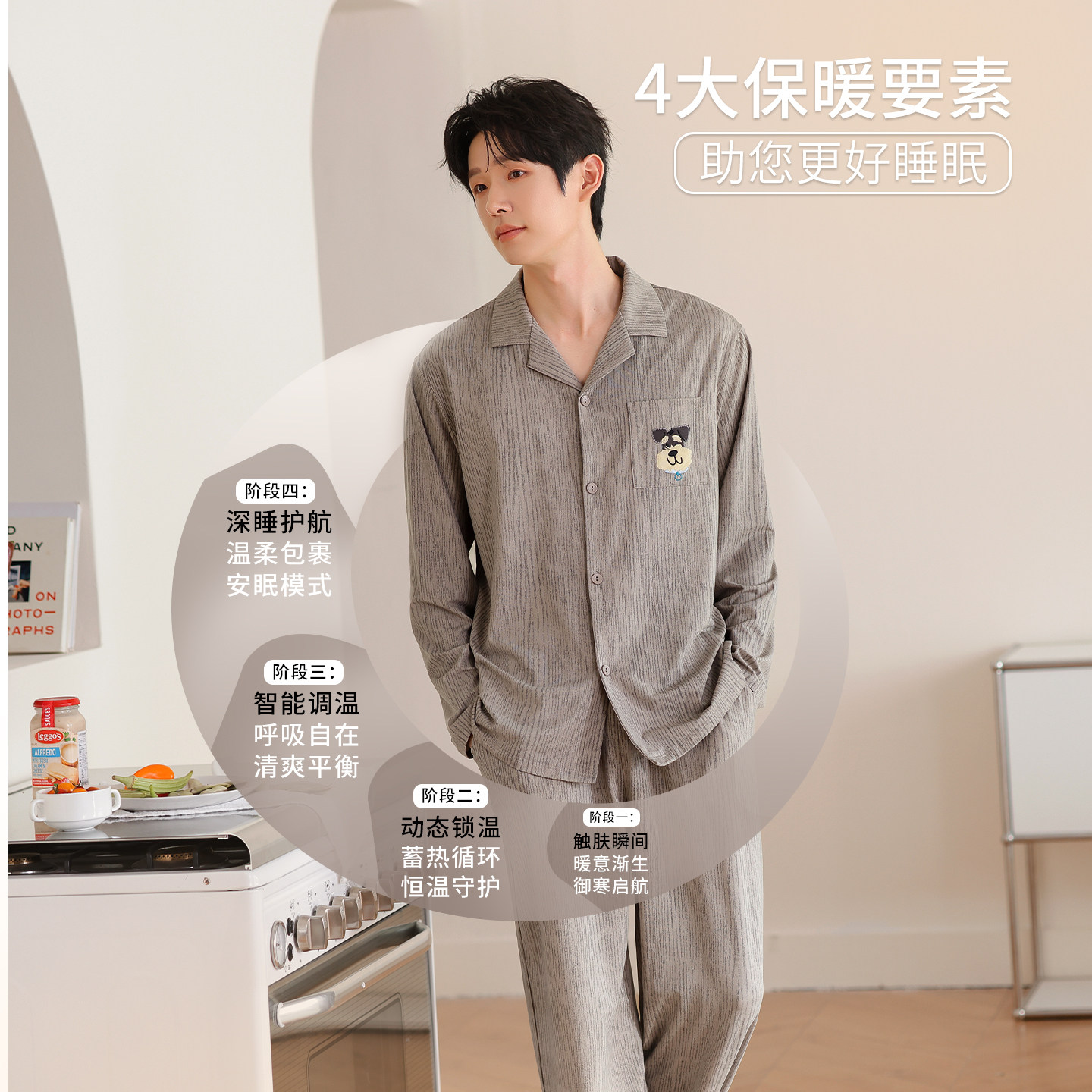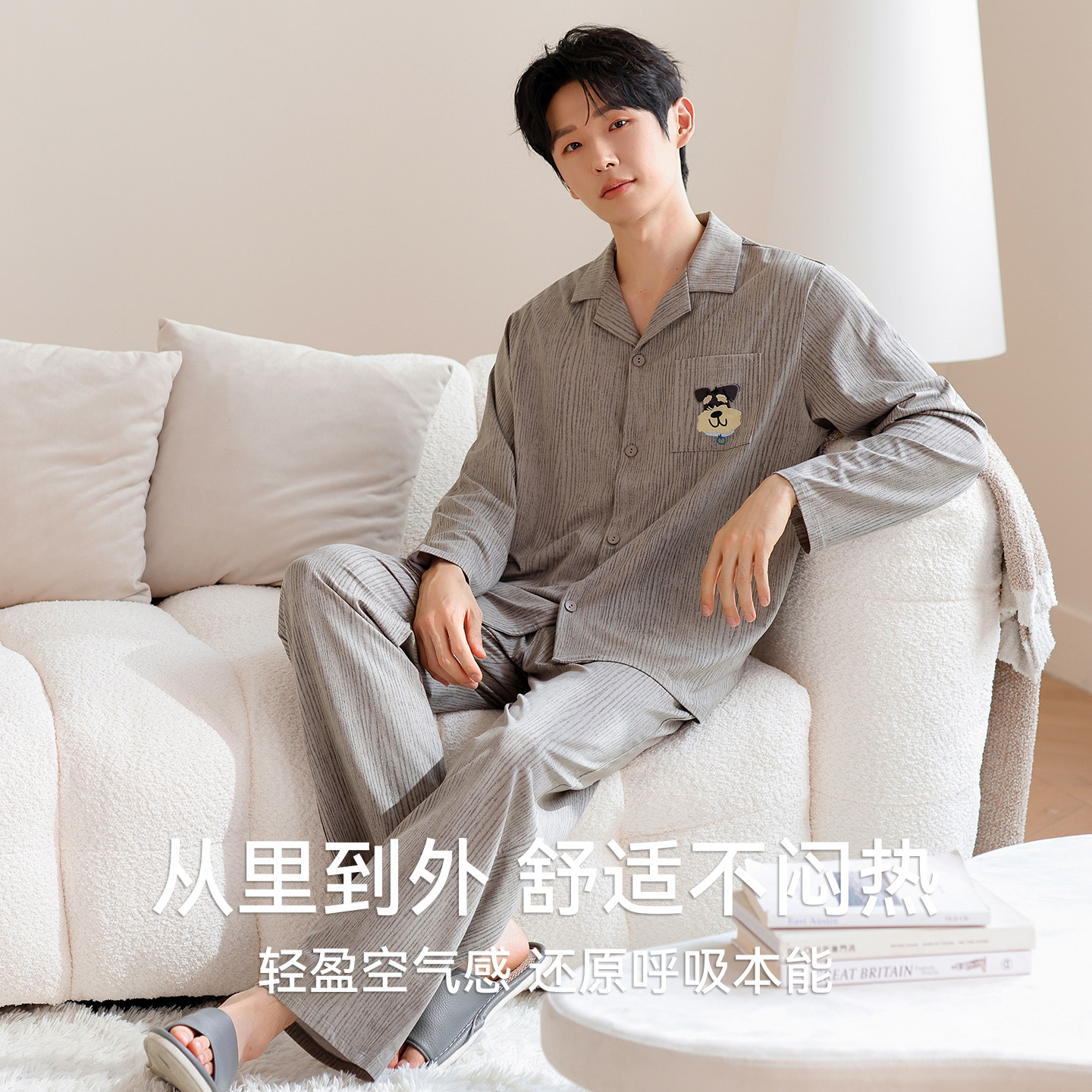 都市丽人男士纯棉睡衣长袖套装