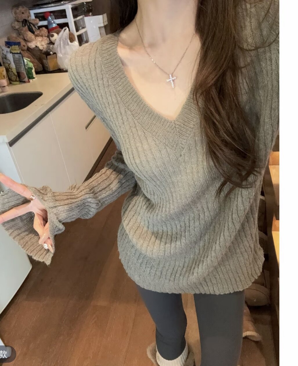 韩国东大门2025秋冬新款韩版时尚休闲百搭宽松显瘦V领针织衫毛衣
