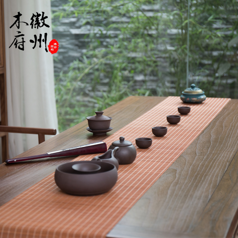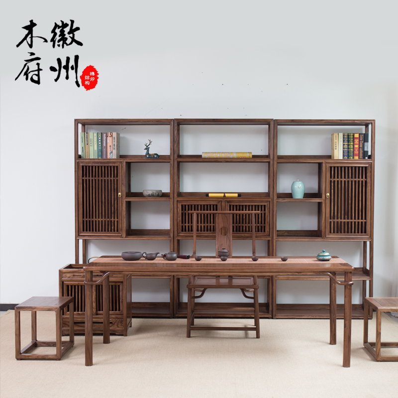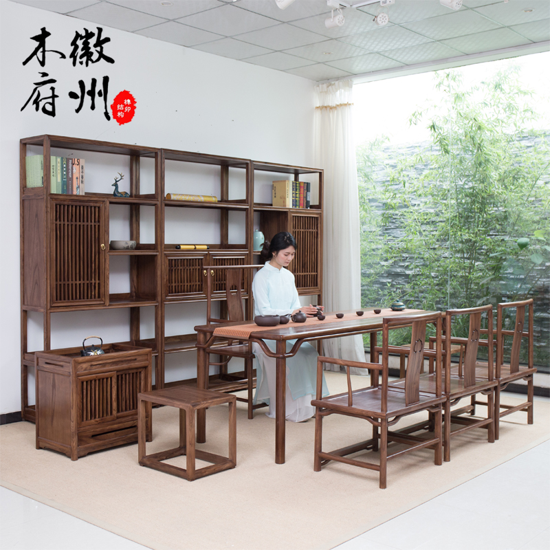 新中式茶桌禅意实木茶台老榆木会议桌餐桌黑胡桃茶室家具简约现代