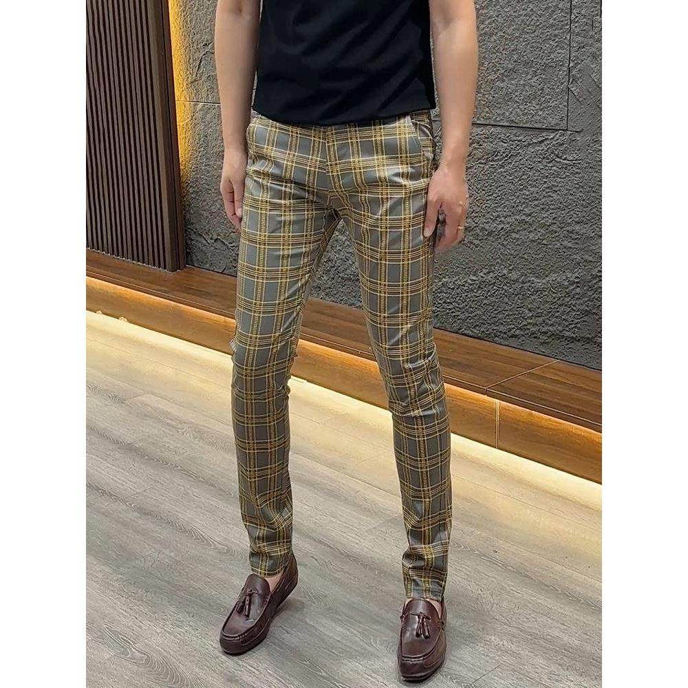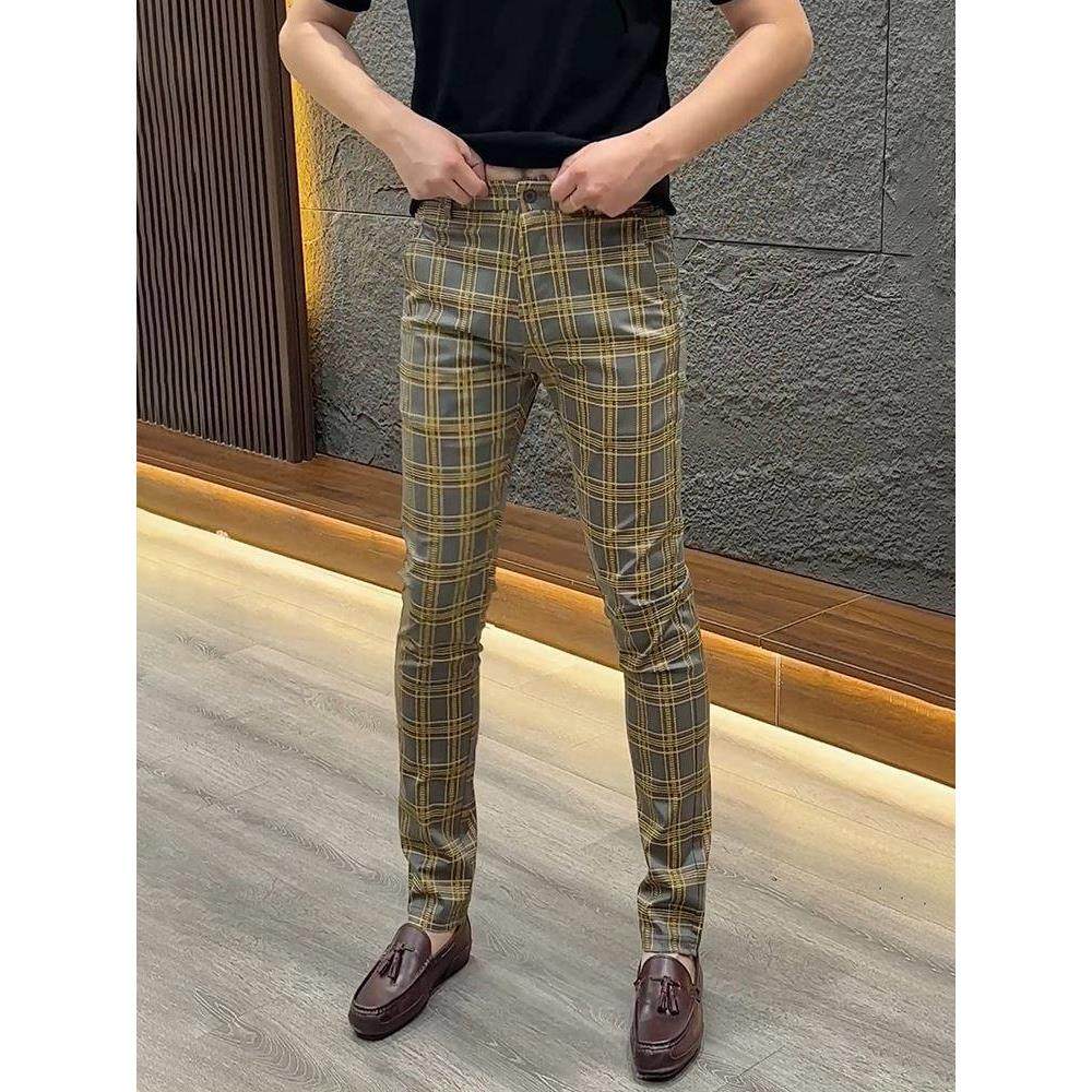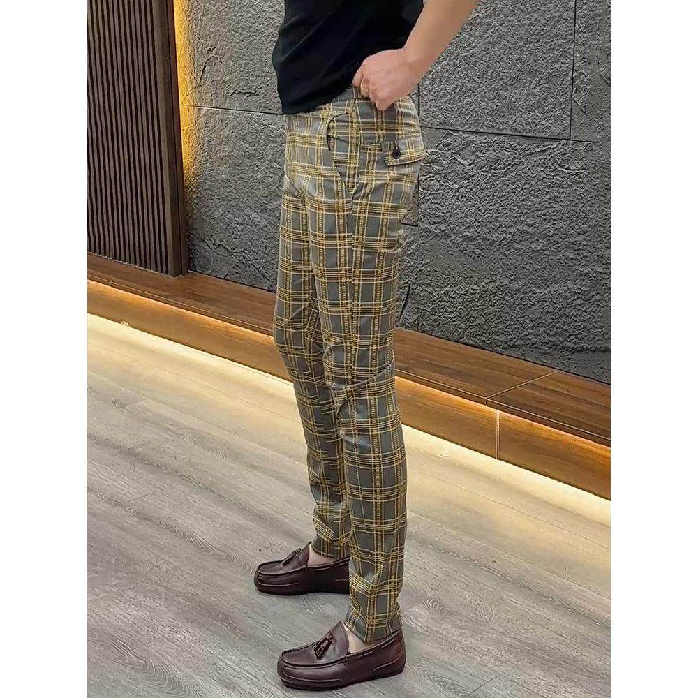 欧洲站男士格子西裤夏季薄款商务九分休闲裤修身中腰小直筒长裤潮