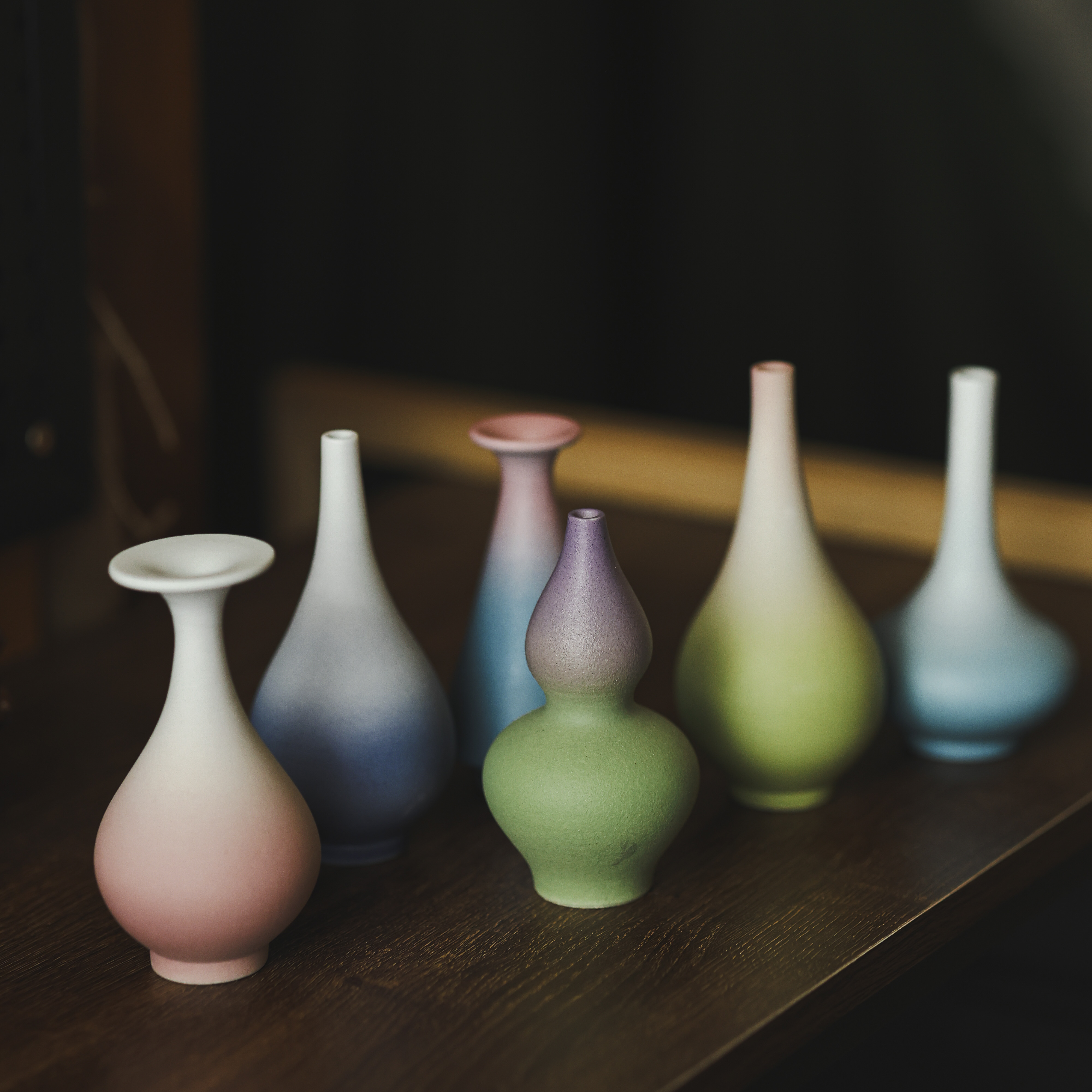 景德镇高温陶瓷渐变色马卡龙磨砂花瓶花插家居装饰品摆件小花瓶