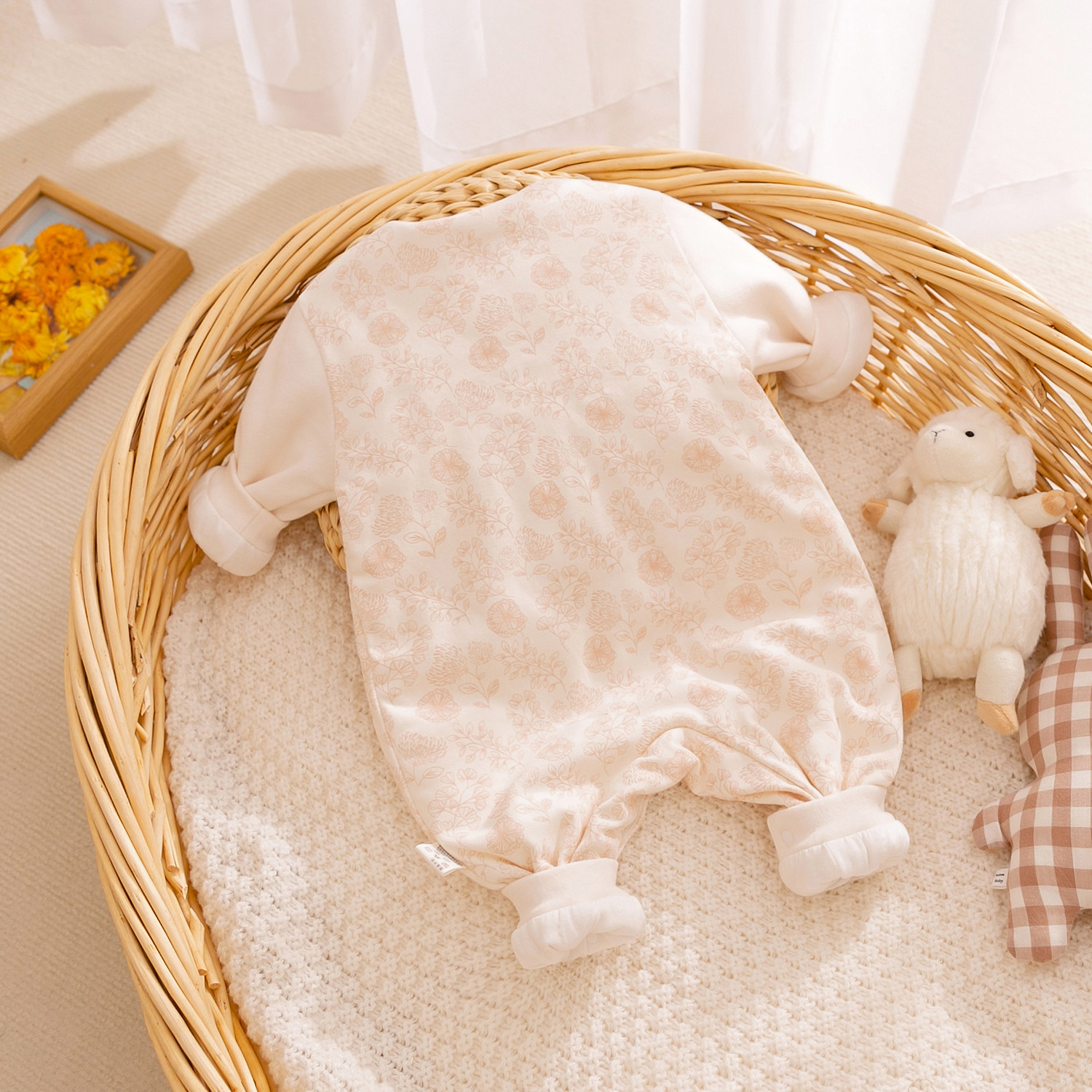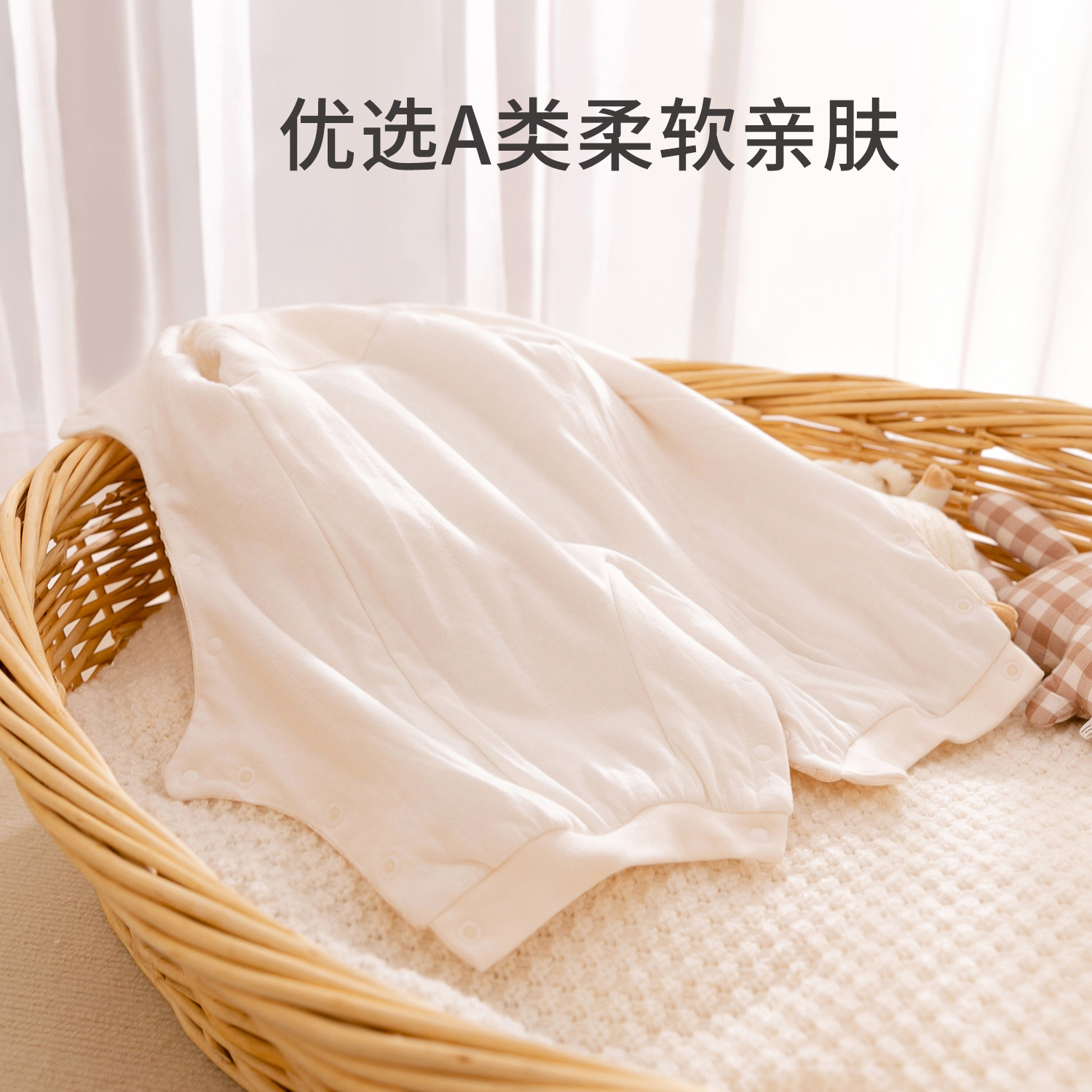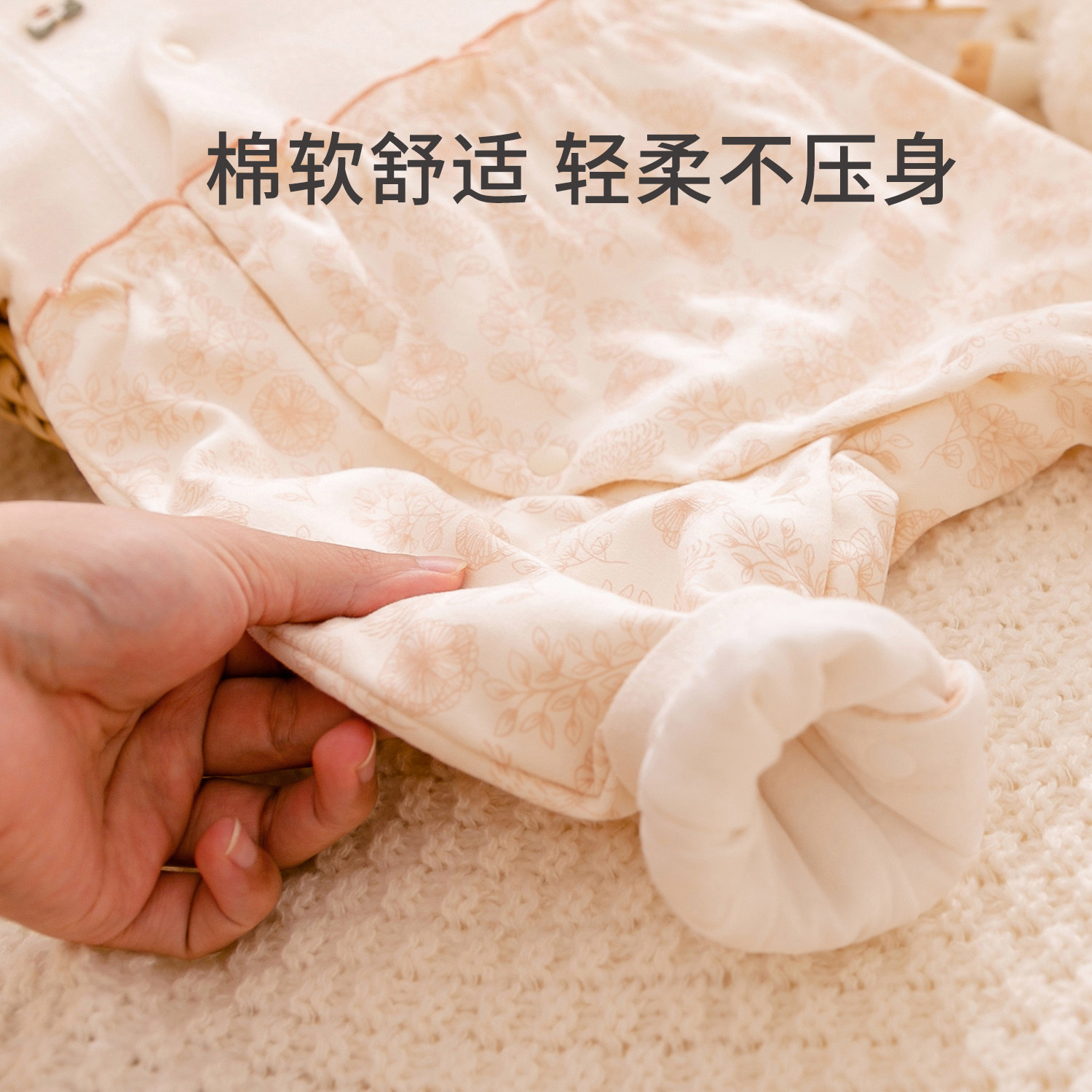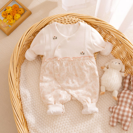 婴儿夹棉连体衣新生儿纯棉A类哈衣女宝宝薄棉衣服秋冬季斜襟护肚