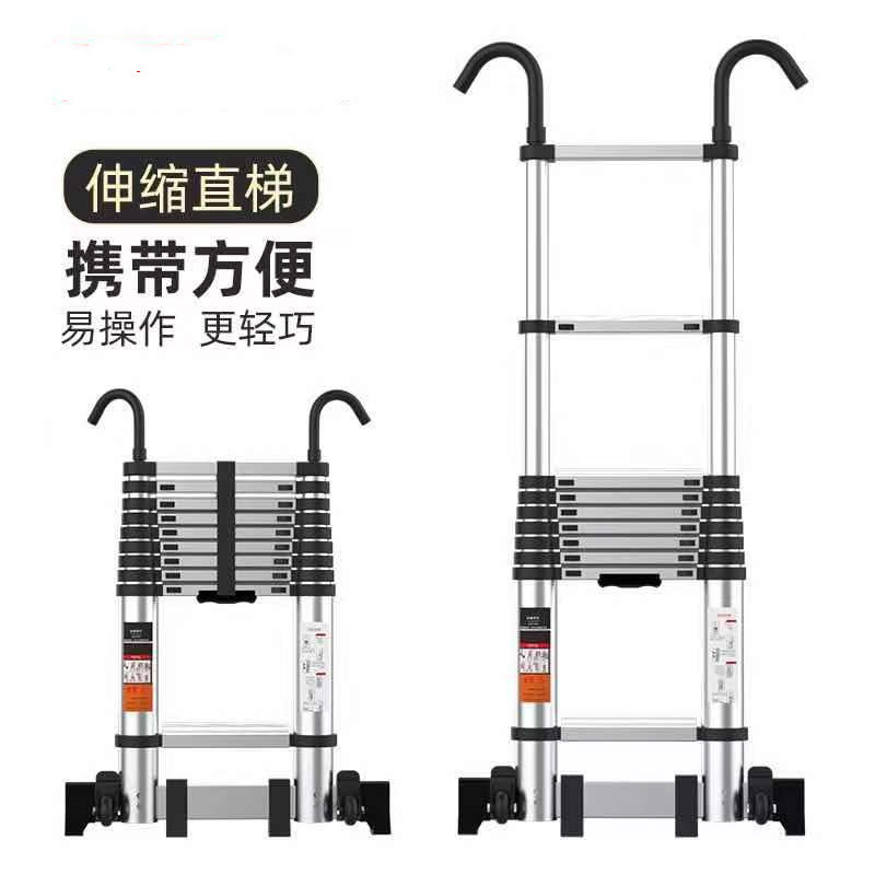 加厚工程梯铝合金带钩单面加宽伸缩梯挂钩梯便携折叠家用升降楼梯