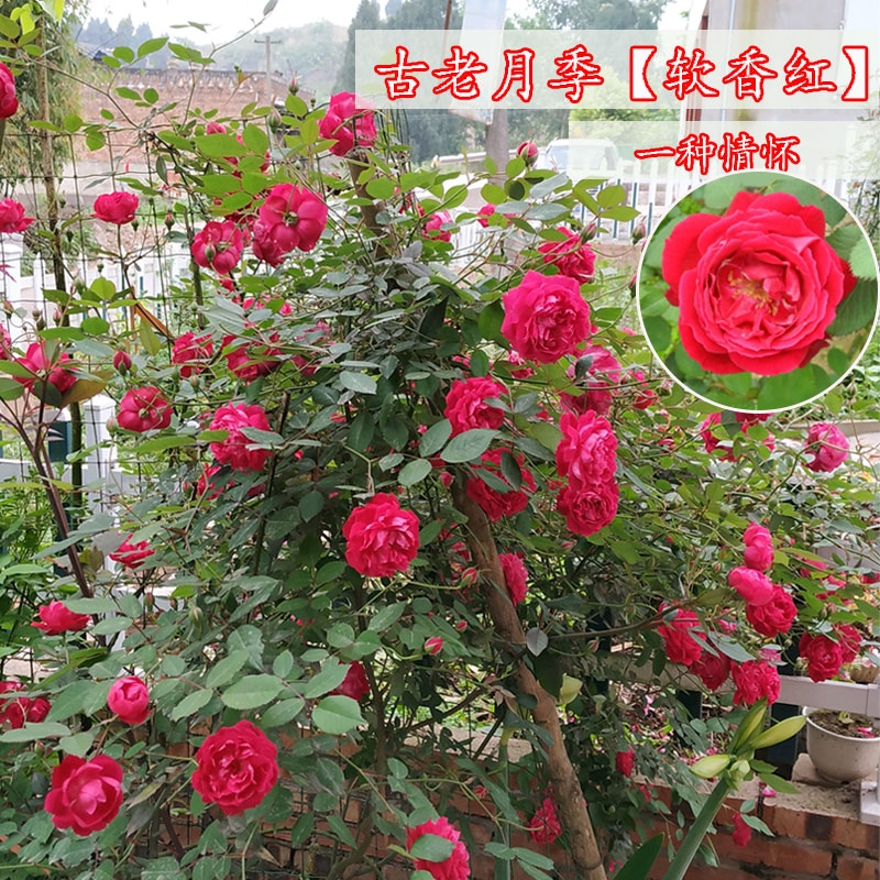 中国古老月季红色总汇软香红月月红玫瑰花苗浓香爬藤耐寒盆栽花卉