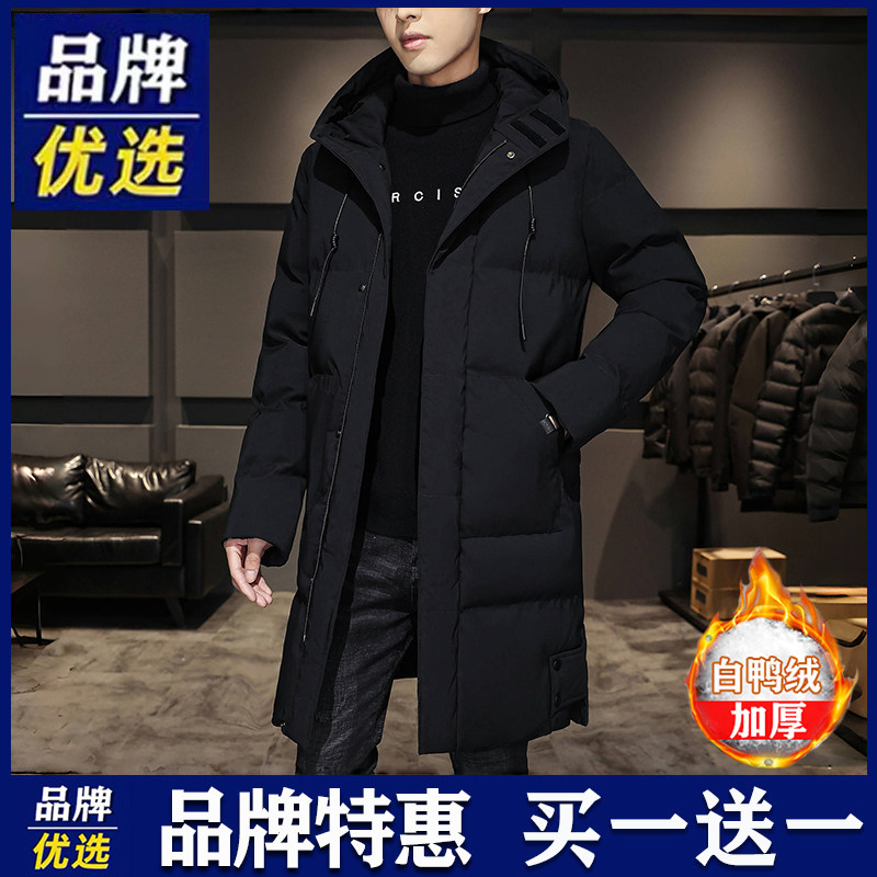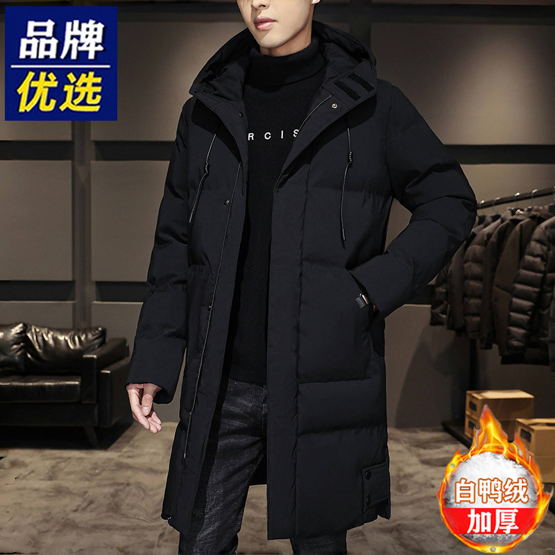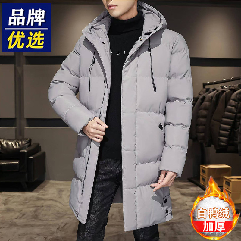 品牌优选羽绒服男士中长款冬季加厚防风防水潮流白鸭绒连帽帅外套
