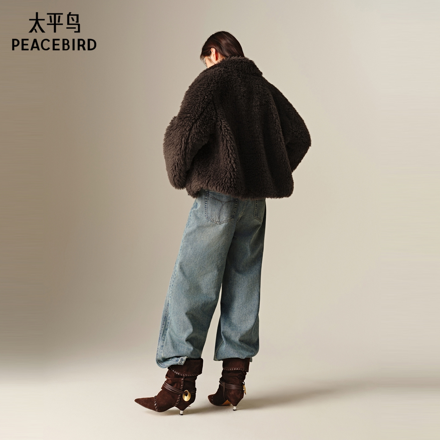 【商场同款】太平鸟翻领夹克式深杏棕仿裘皮直筒外套女A3AEF4407