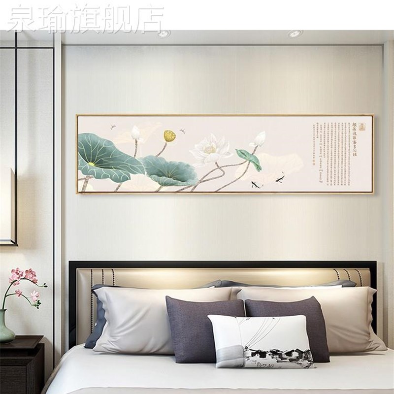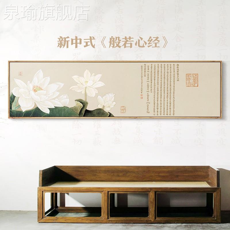 定做新中式荷花装饰画卧室床禅头花壁画意横版莲般若波罗蜜多心经