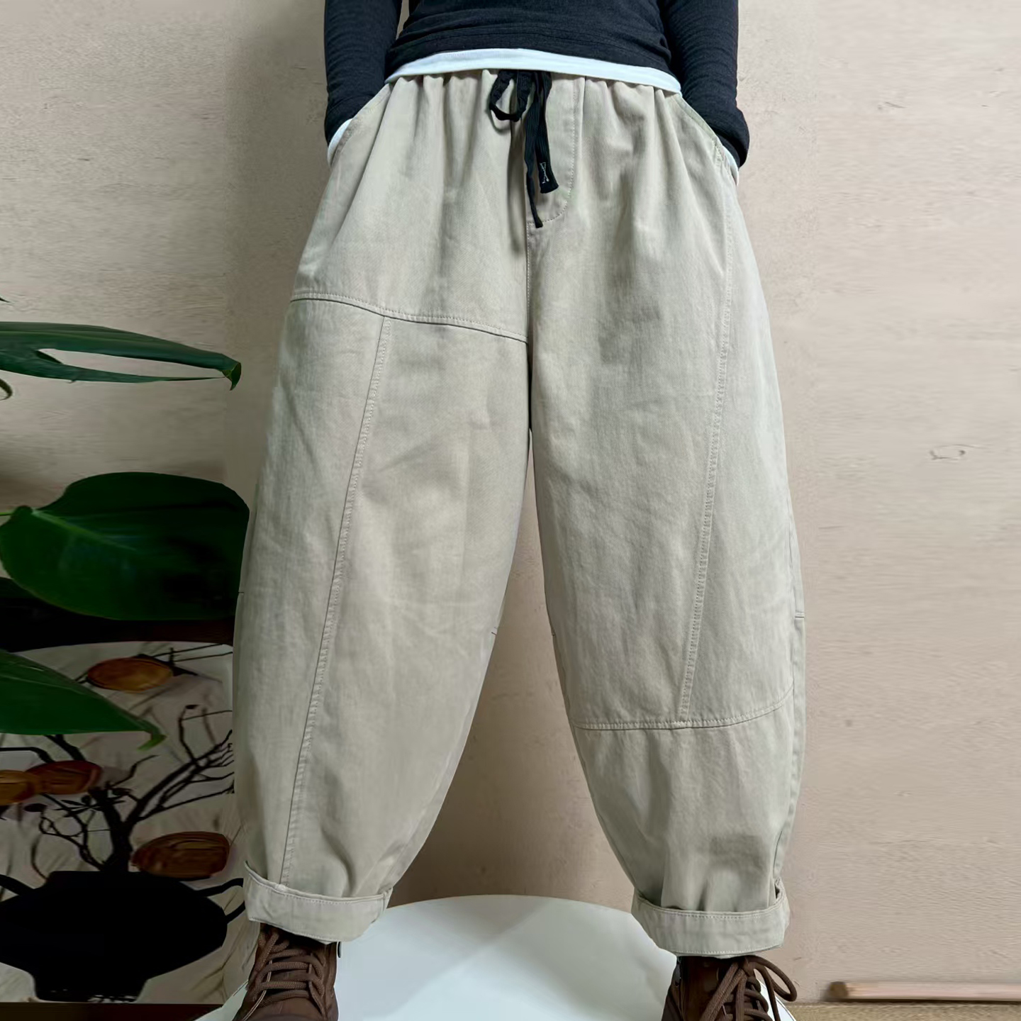 2025早秋新款牛仔哈伦裤女宽松九分裤复古做旧工装裤妈妈休闲裤