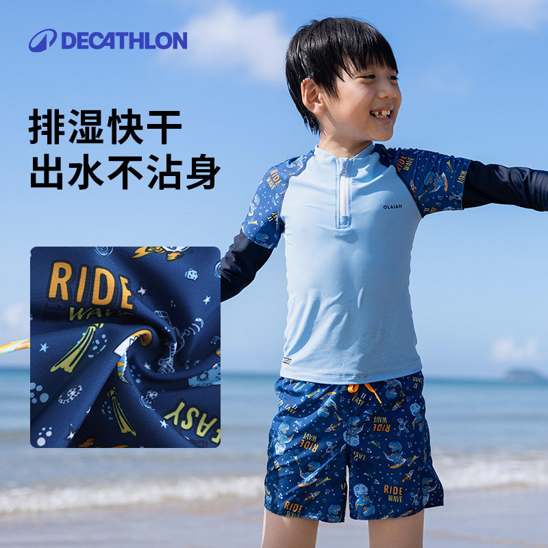 迪卡侬男童沙滩裤游泳短裤儿童男童沙滩裤海边游泳裤温泉速干KIDK