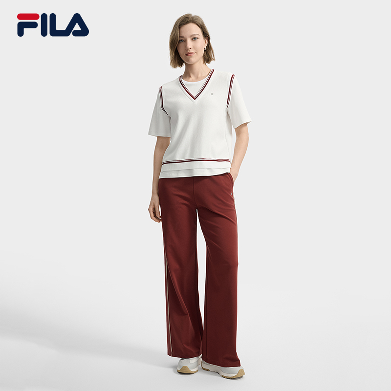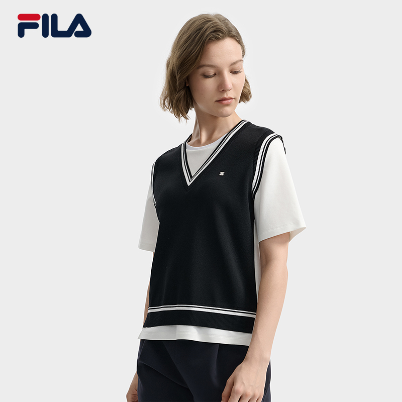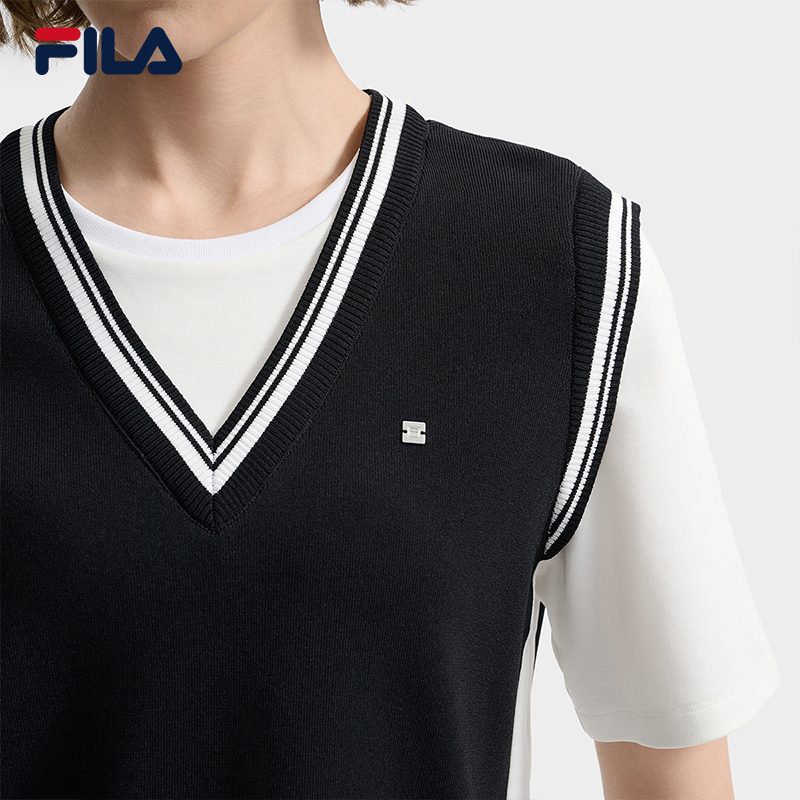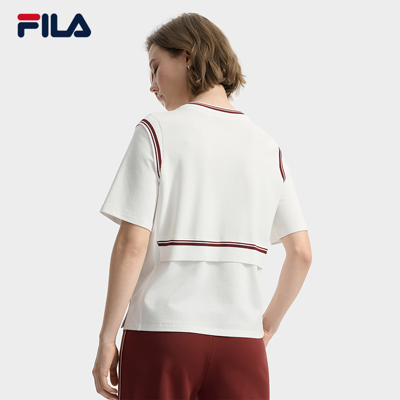FILA 斐乐官方女子针织短袖衫2025秋新款时尚休闲舒适假两件上衣