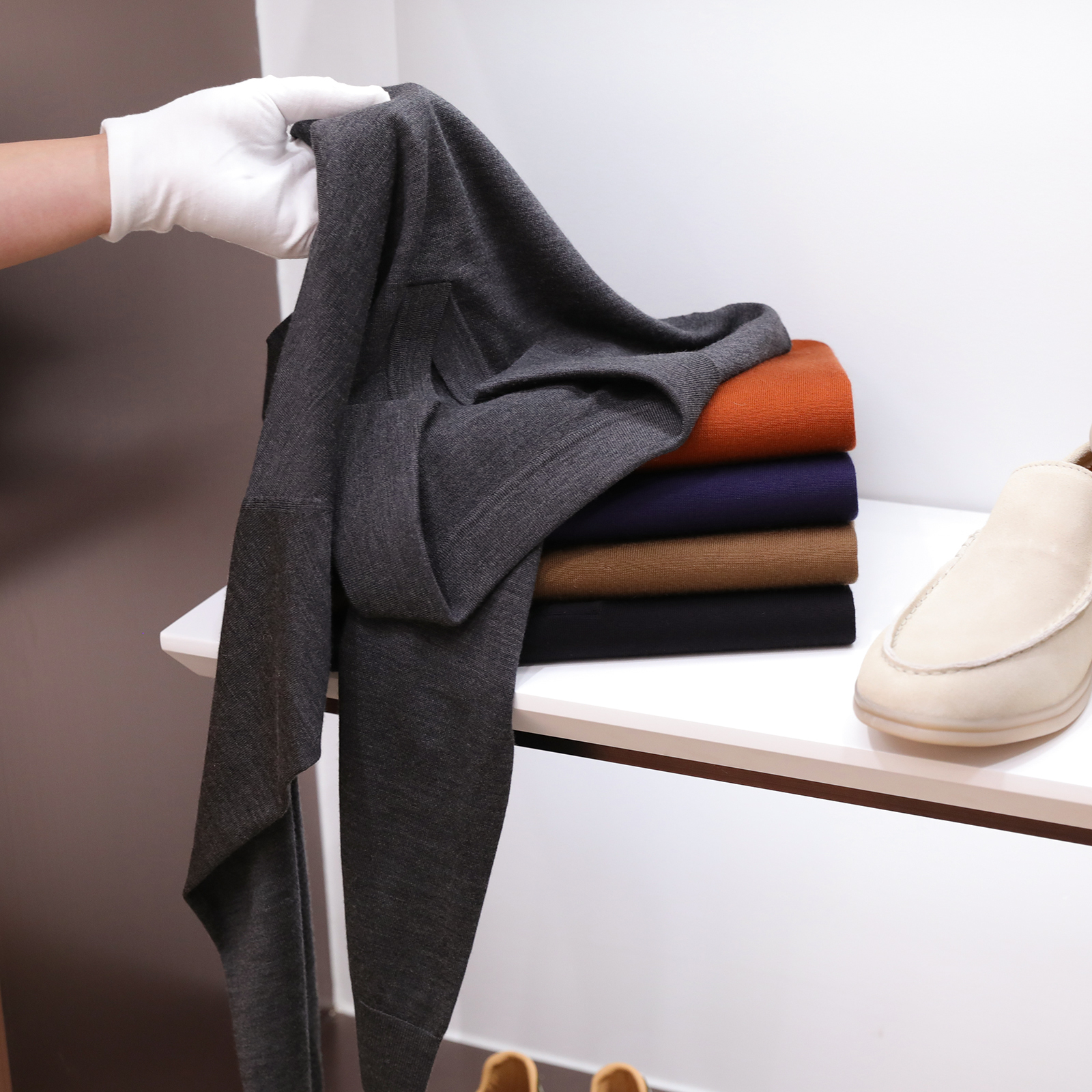 2025秋冬季新款男士叠穿海鸥领针织打底衫宽松纯色内搭毛衣潮1295