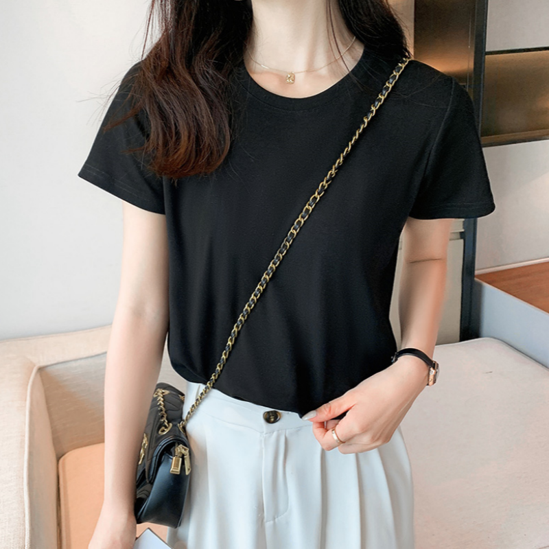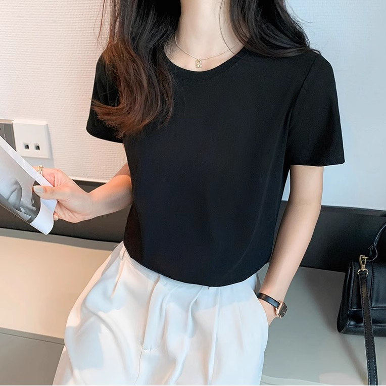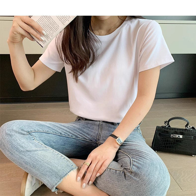 纯色棉t恤女短袖2025新款夏季白色半袖T恤宽松显瘦圆领体恤衫