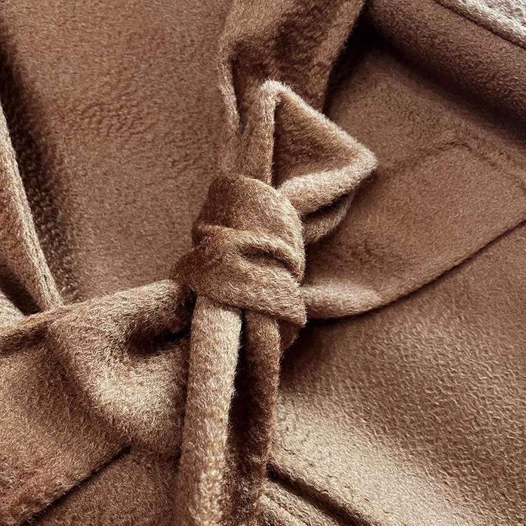 双面羊毛大衣女中长款收腰款秋冬水波纹高端连帽宽松羊毛毛呢外套