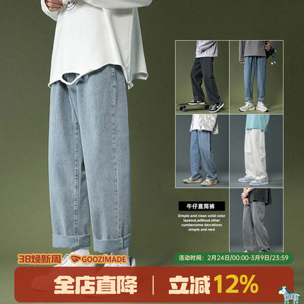 GOOZI MADE 牛仔裤男春秋新款直筒宽松长裤水洗休闲男生裤子男款